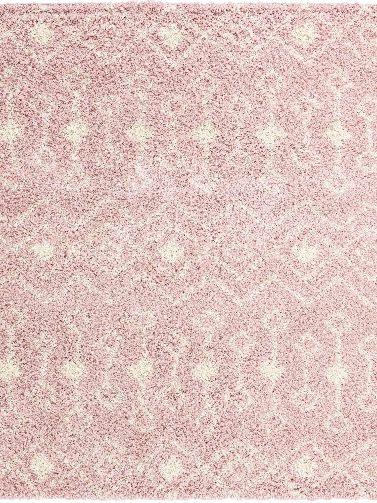Light Pink 7' 10 x 7' 10 Moroccan Trellis Shag Square Area Rug Thick Soft Touch Fluffy & Plush Shaggy Pile