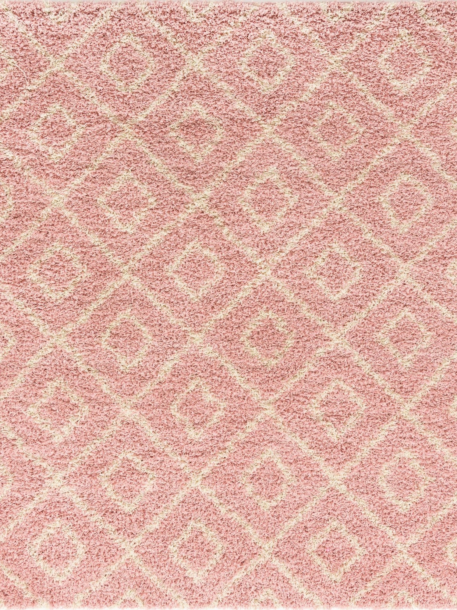 Light Pink 7' 10 x 7' 10 Trellis Shag Square Area Rug Thick Soft Touch Fluffy & Plush Shaggy Pile