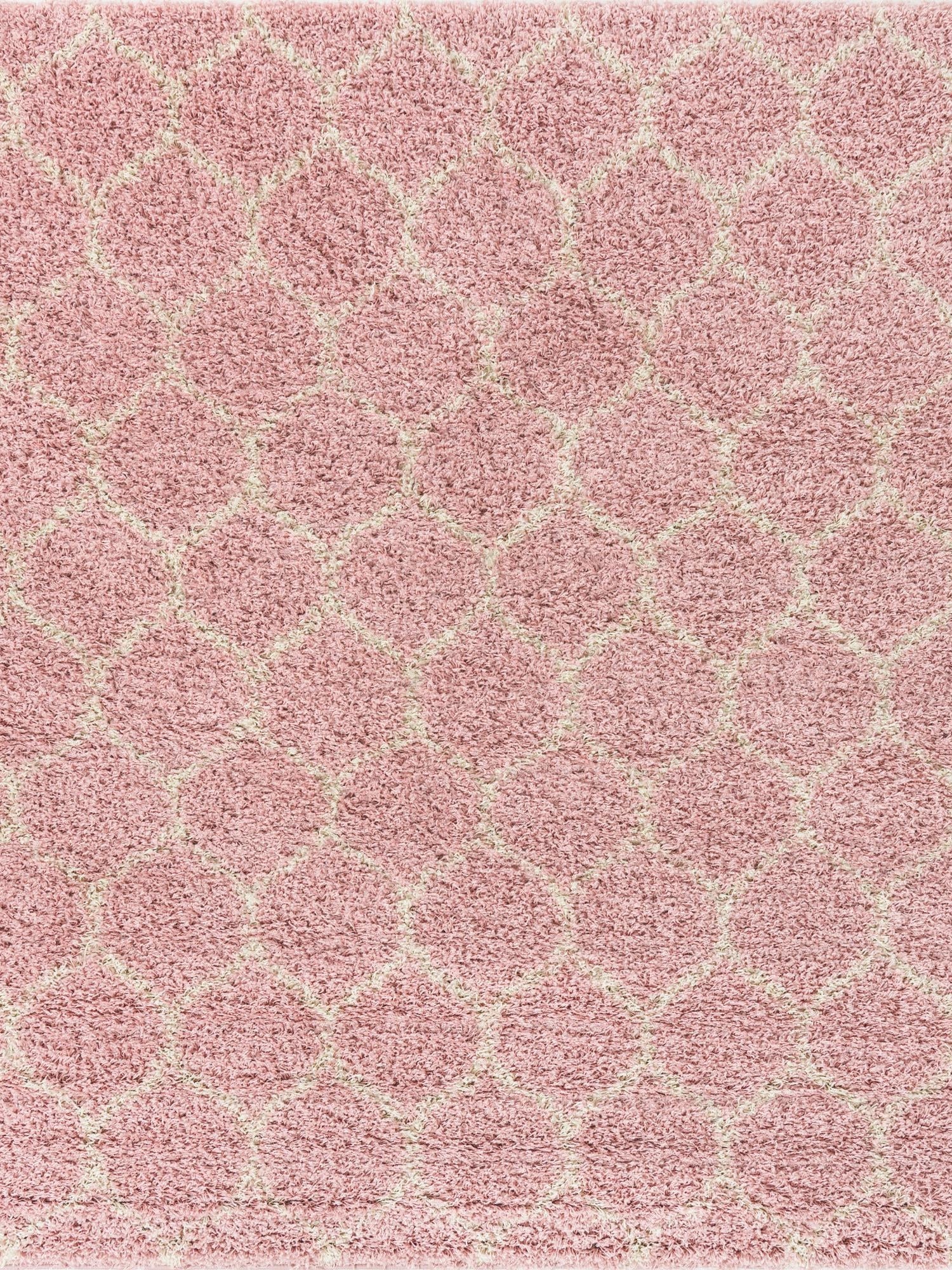 Light Pink 7' 10 x 7' 10 Trellis Shag Square Area Rug Thick Soft Touch Fluffy & Plush Shaggy Pile