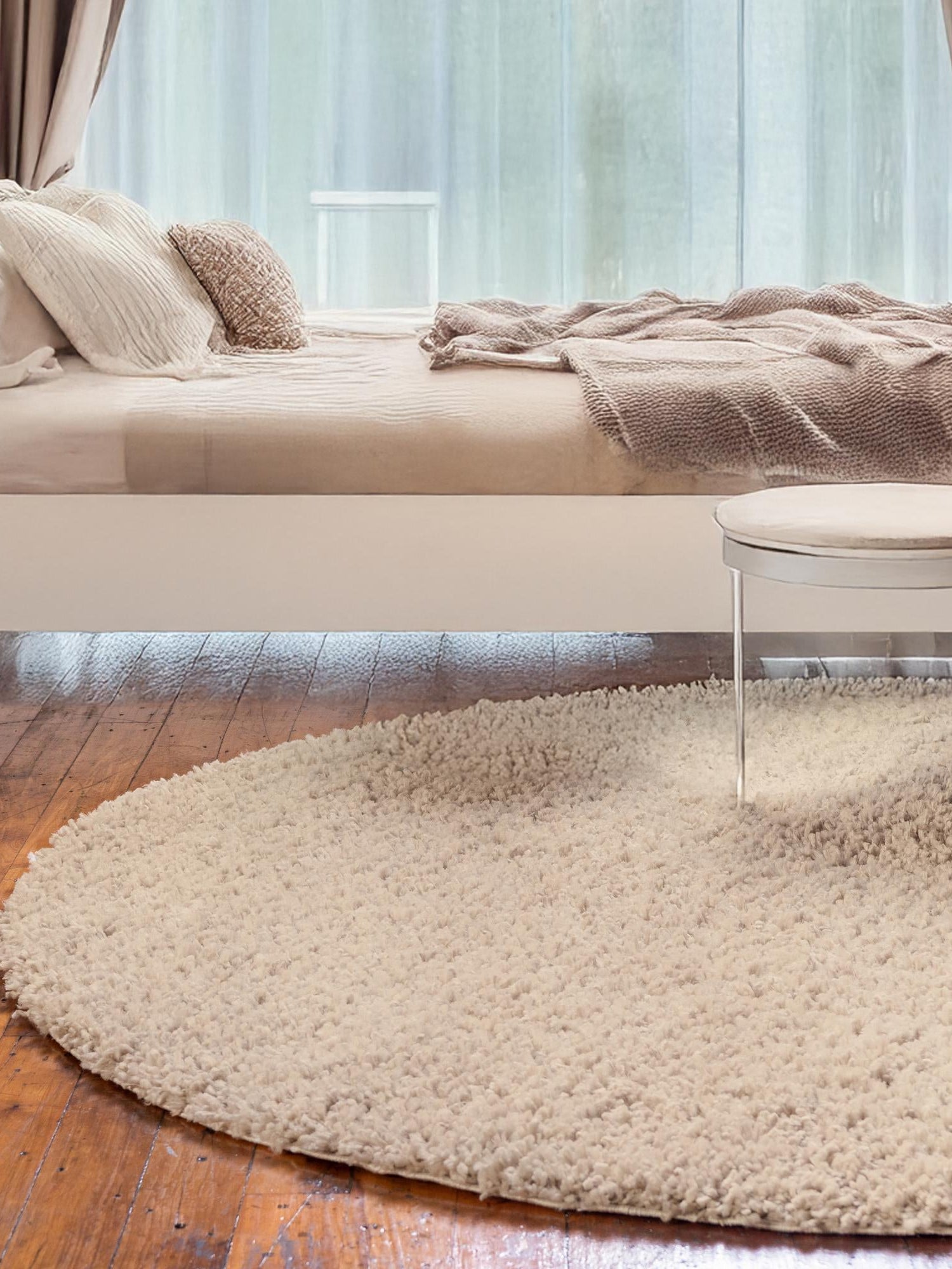Linen 7' 10 x 7' 10 Davos Shag Round Area Rug Thick Soft Touch Fluffy & Plush Shaggy Pile 100% Polypropylene Carpet for Living Dining Bedrooms Office