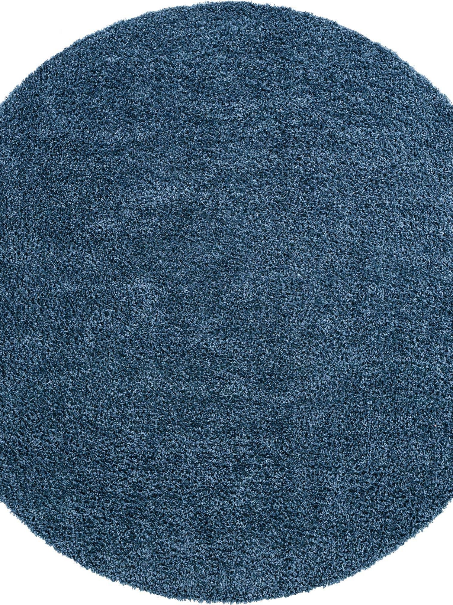 Marine Blue 3' 1 x 3' 1 Davos Shag Round Area Rug Thick Sof...