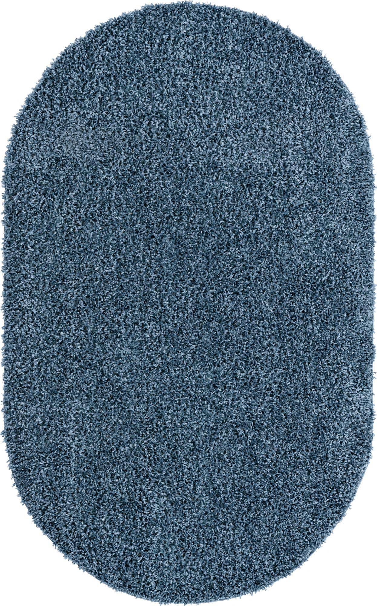 Marine Blue 7' 10 x 10' Davos Shag Oval Area Rug Thick Soft Touch Fluffy & Plush Shaggy Pile 100% Polypropylene Carpet for Living Dining Bedrooms Office