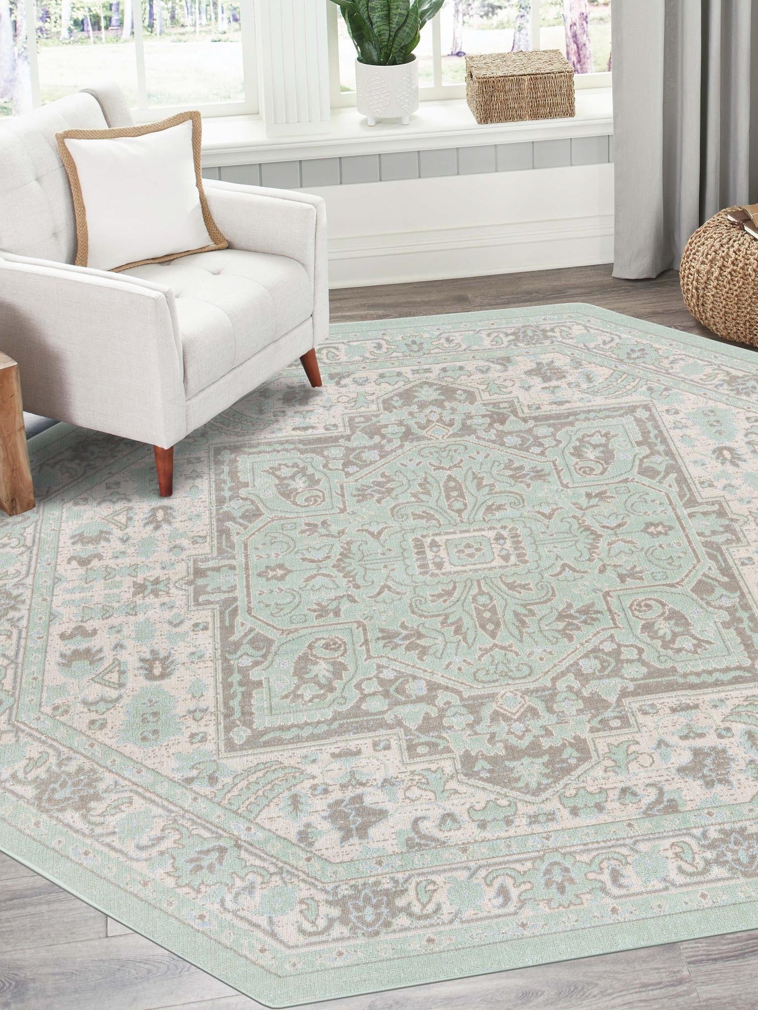 - Elegant Mint Color: The soothing mint color adds a refreshing touch to any decor. It complements a wide range of interior design styles, making it a versatile choice for your home. This rug can invigorate your space with its subtle yet eye-catching hue.