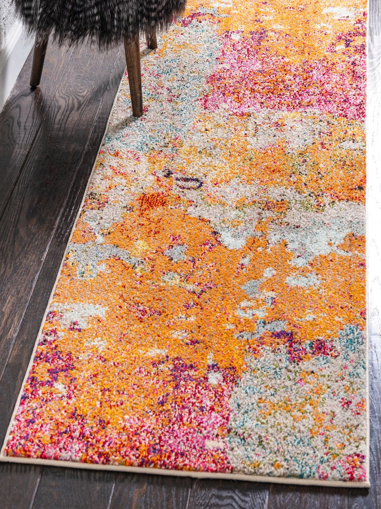 Multicolor 2' 2 x 6' 9 Chromatic Runner Area Rug 100% Polypropylene With Cotton Backing Abstract Modern Colorful Carpet Mat for Home Decor & Interior Design