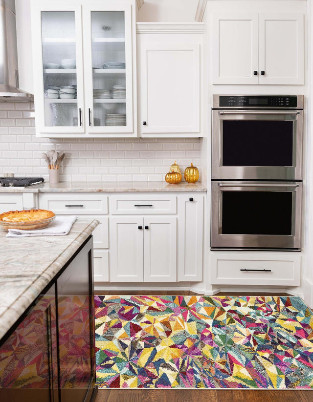 Multicolor 2' 2 x 6' 9 Estrella Runner Area Rug 100% Polypropylene Non-Shedding Stain Resistant Carpet Colorful Modern Abstract Design Easy Clean for Home Decor
