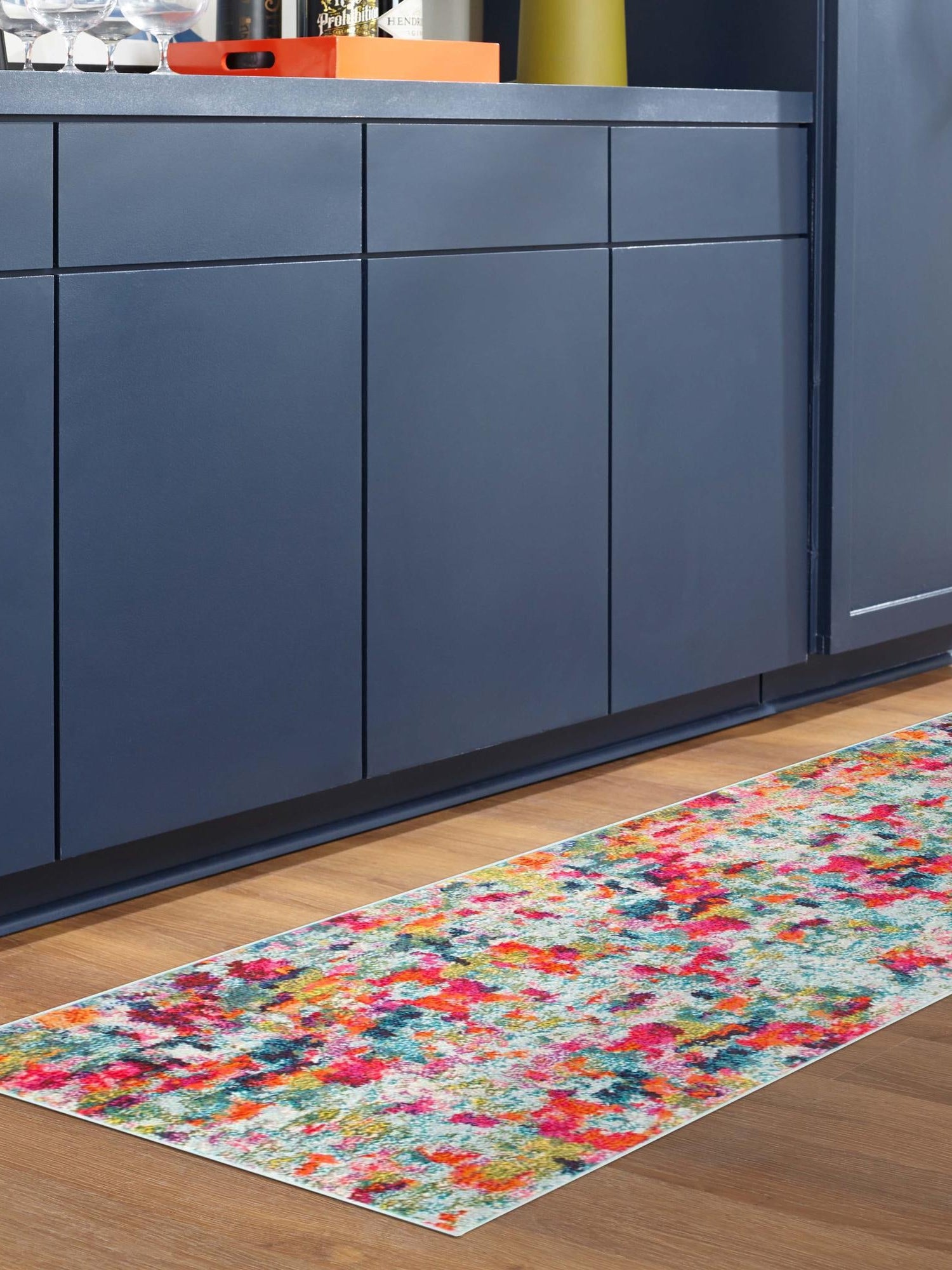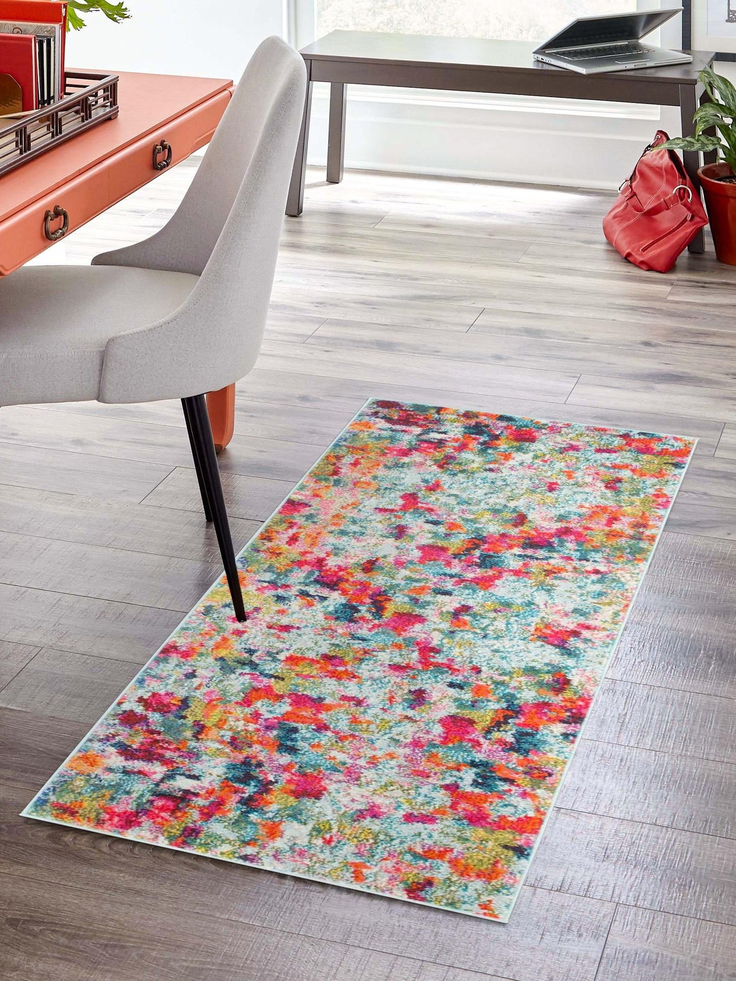 Multicolor 2' x 8' Chromatic Runner Area Rug 100% Polypropylene With Cotton Backing Abstract Modern Colorful Carpet Mat for Home Decor & Interior Design