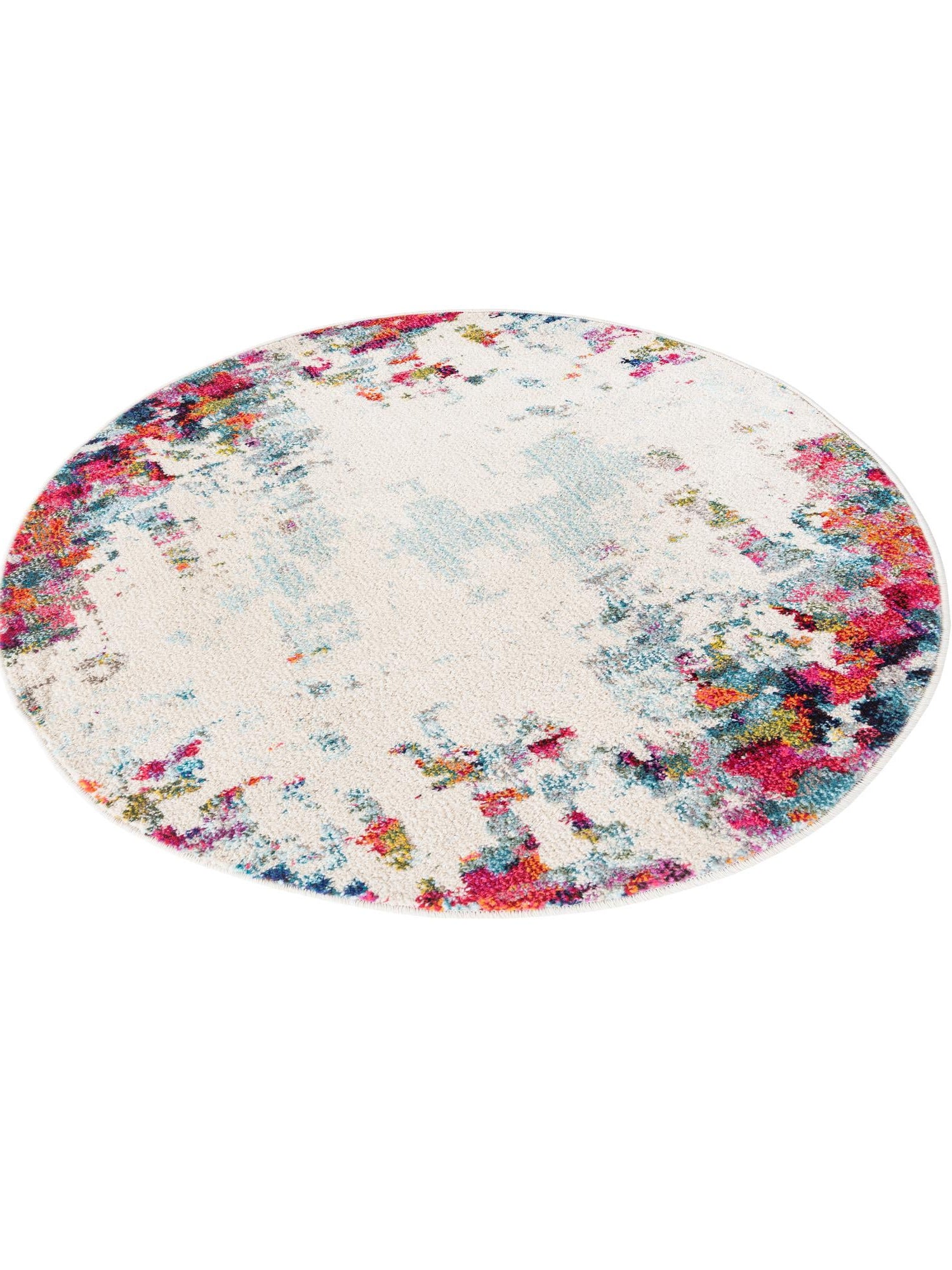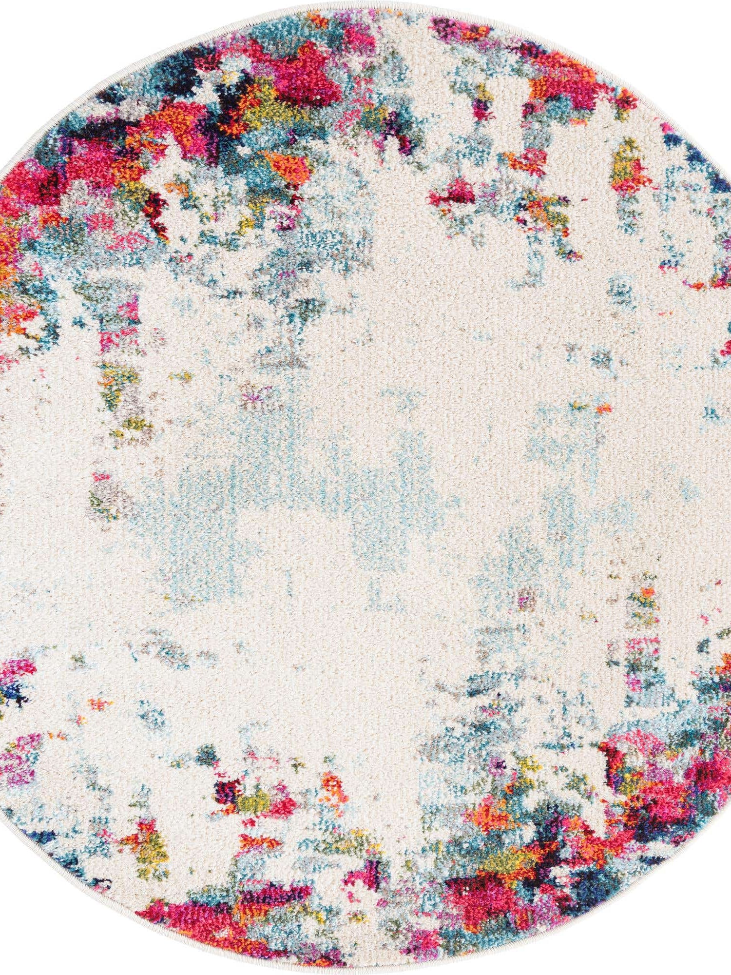 Multicolor 3' 3 x 3' 3 Chromatic Round Area Rug 100% Polypropylene With Cotton Backing Abstract Modern Colorful Carpet Mat for Home Decor & Interior Design