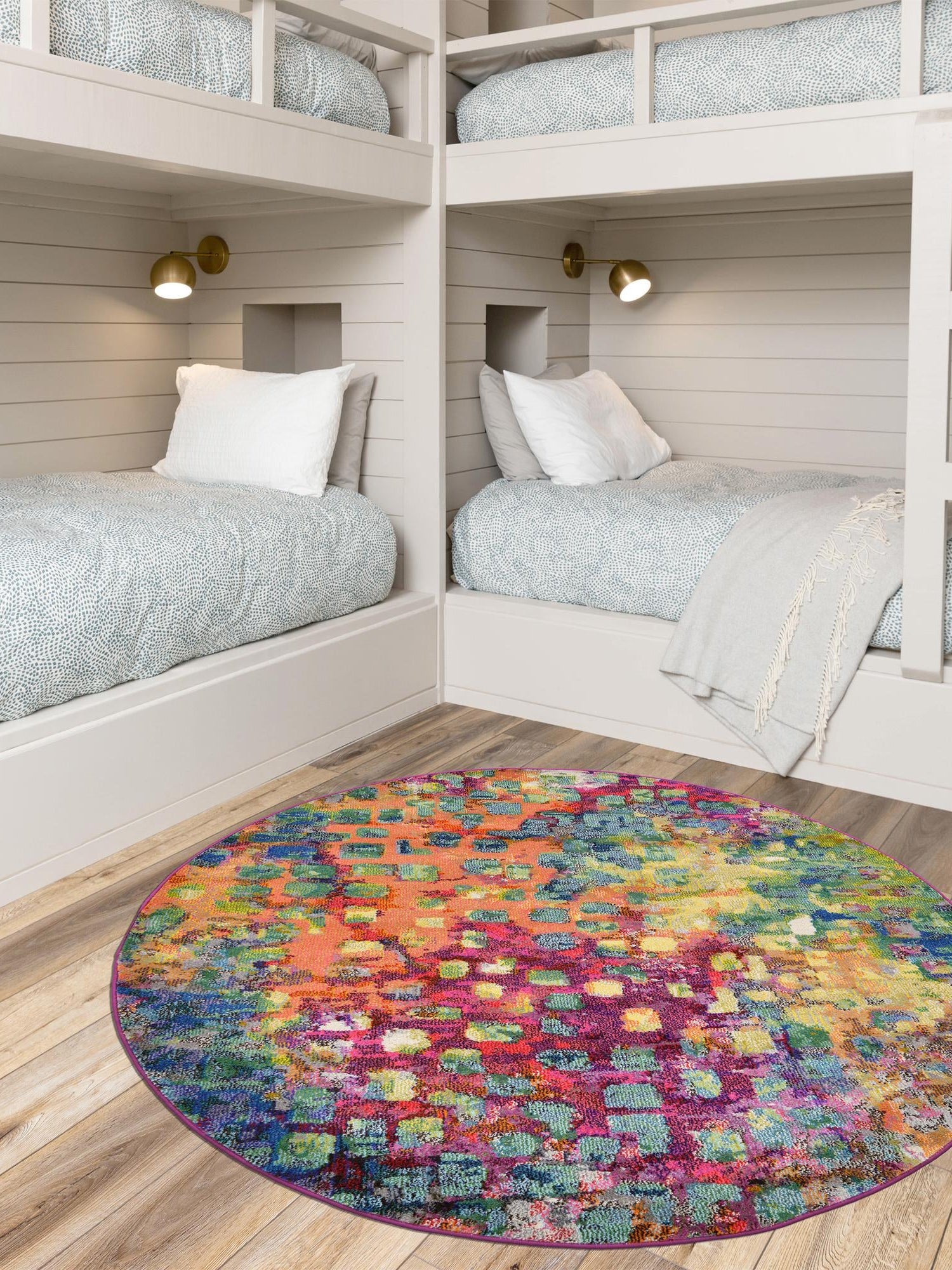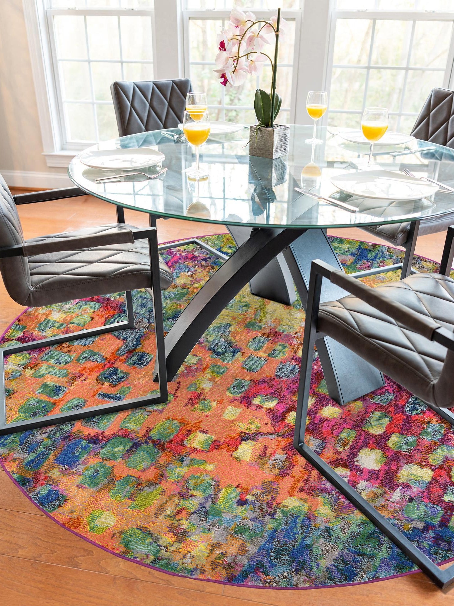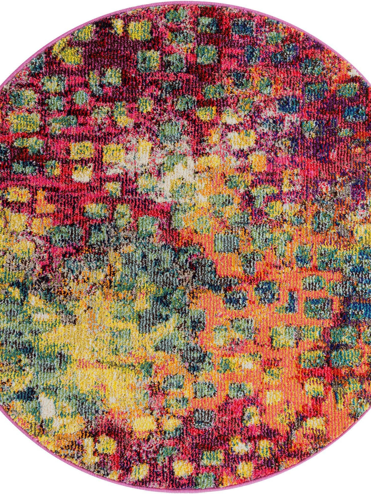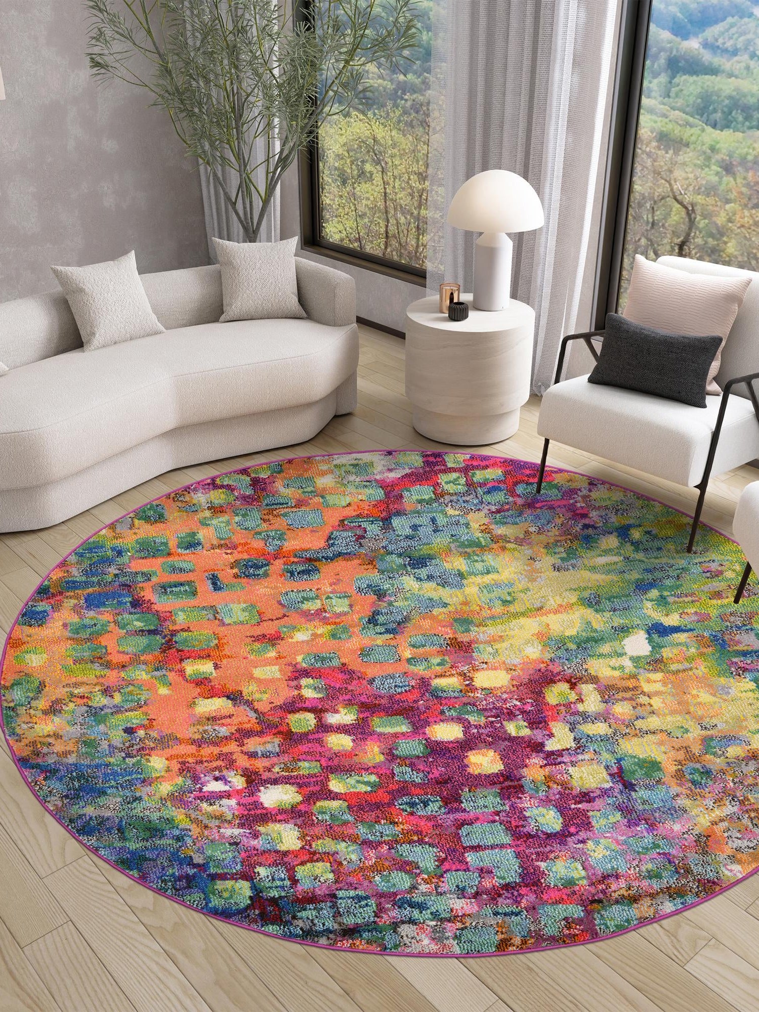 Multicolor 3' 3 x 3' 3 Jardin Round Area Rug 100% Polypropylene With Cotton Backing Colorful & Vivid Modern Carpet for Home Decor