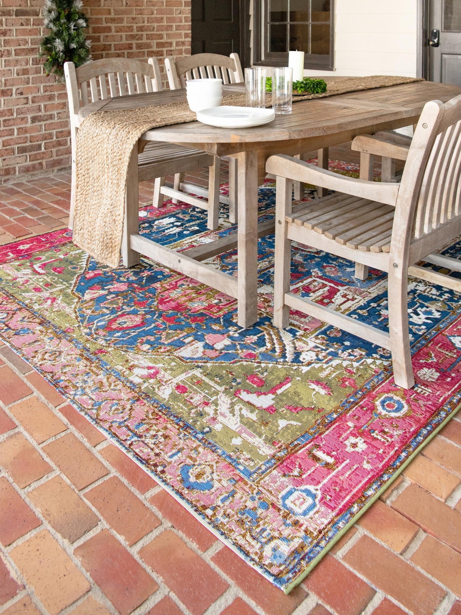 - Stunning Multicolor Design: The vibrant multi-color palette adds a lively touch to any space, making it a standout feature in your outdoor area. Its Persian-inspired design brings a classic elegance that enhances the aesthetic appeal of your surroundings. Transform your outdoor living experience with a decorative rug that reflects your unique style.