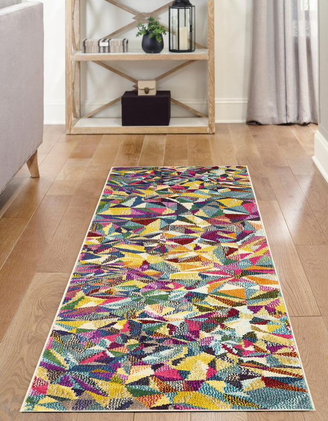 Multicolor 2' 7 x 10' Estrella Runner Area Rug 100% Polypropylene Non-Shedding Stain Resistant Carpet Colorful Modern Abstract Design Easy Clean for Home Decor