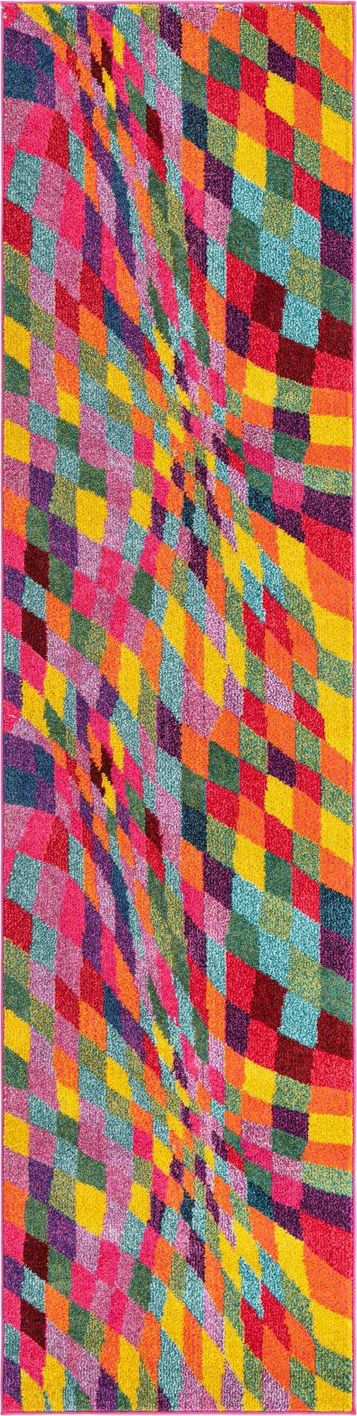Multicolor 2' 7 x 10' Estrella Runner Area Rug 100% Polypropylene Non-Shedding Stain Resistant Carpet Colorful Modern Abstract Design Easy Clean for Home Decor