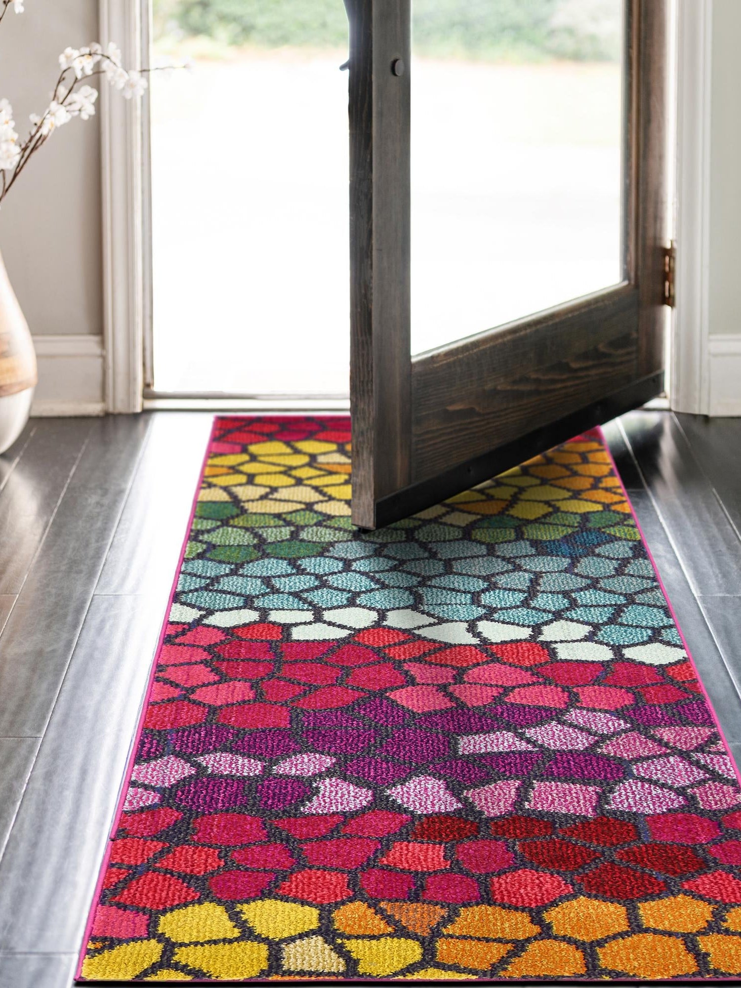 - Vibrant Multicolor Design: The multi-colored design of the rug brings a lively touch to any setting, making it a perfect addition to modern interiors. Each color is carefully chosen to complement a variety of decor styles, from contemporary to eclectic. This vibrant look not only adds character to your home but also makes it an eye-catching focal point in any room.