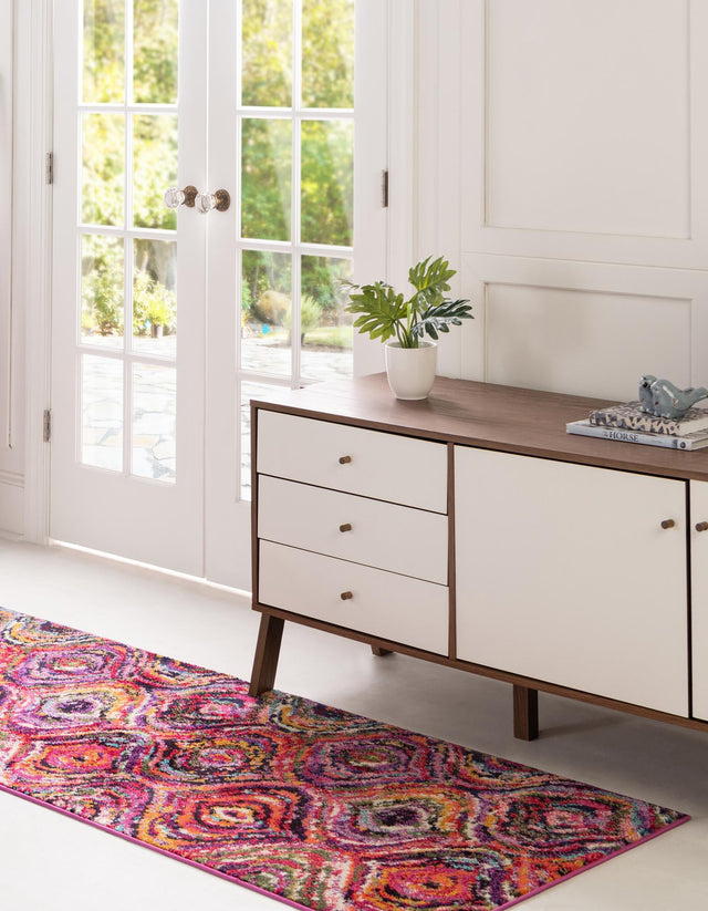 Multicolor 2' 7 x 10' Estrella Runner Area Rug 100% Polypropylene Non-Shedding Stain Resistant Carpet Colorful Modern Abstract Design Easy Clean for Home Decor