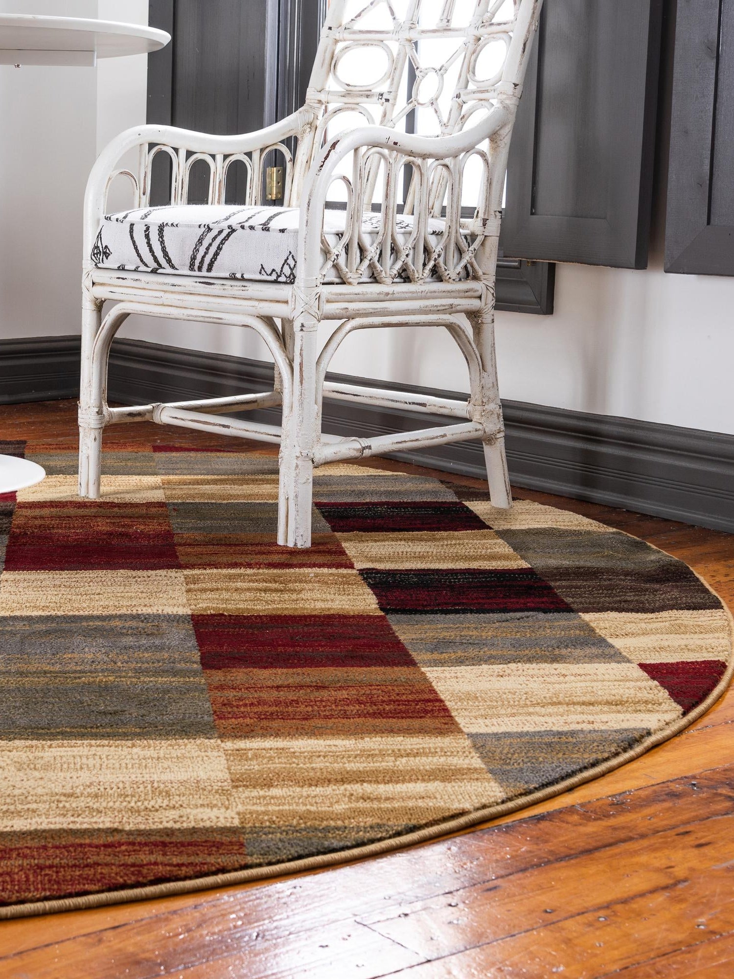 Washable Multicolor 5' x 5' Timeless Round Area Rug Easy to Clean Stain Resistant & Durable