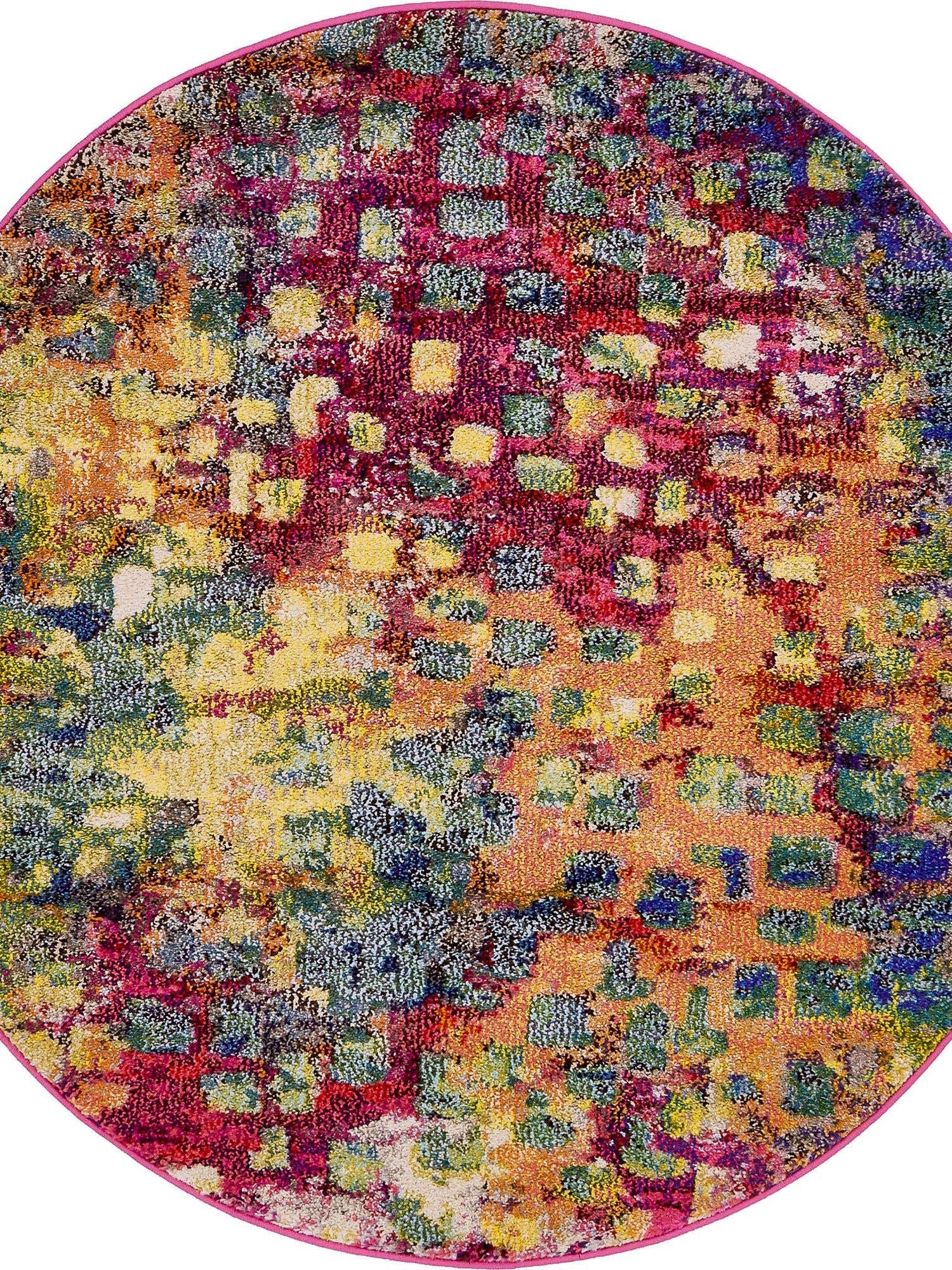 Multicolor 4' 1 x 4' 1 Jardin Round Area Rug 100% Polypropylene With Cotton Backing Colorful & Vivid Modern Carpet for Home Decor