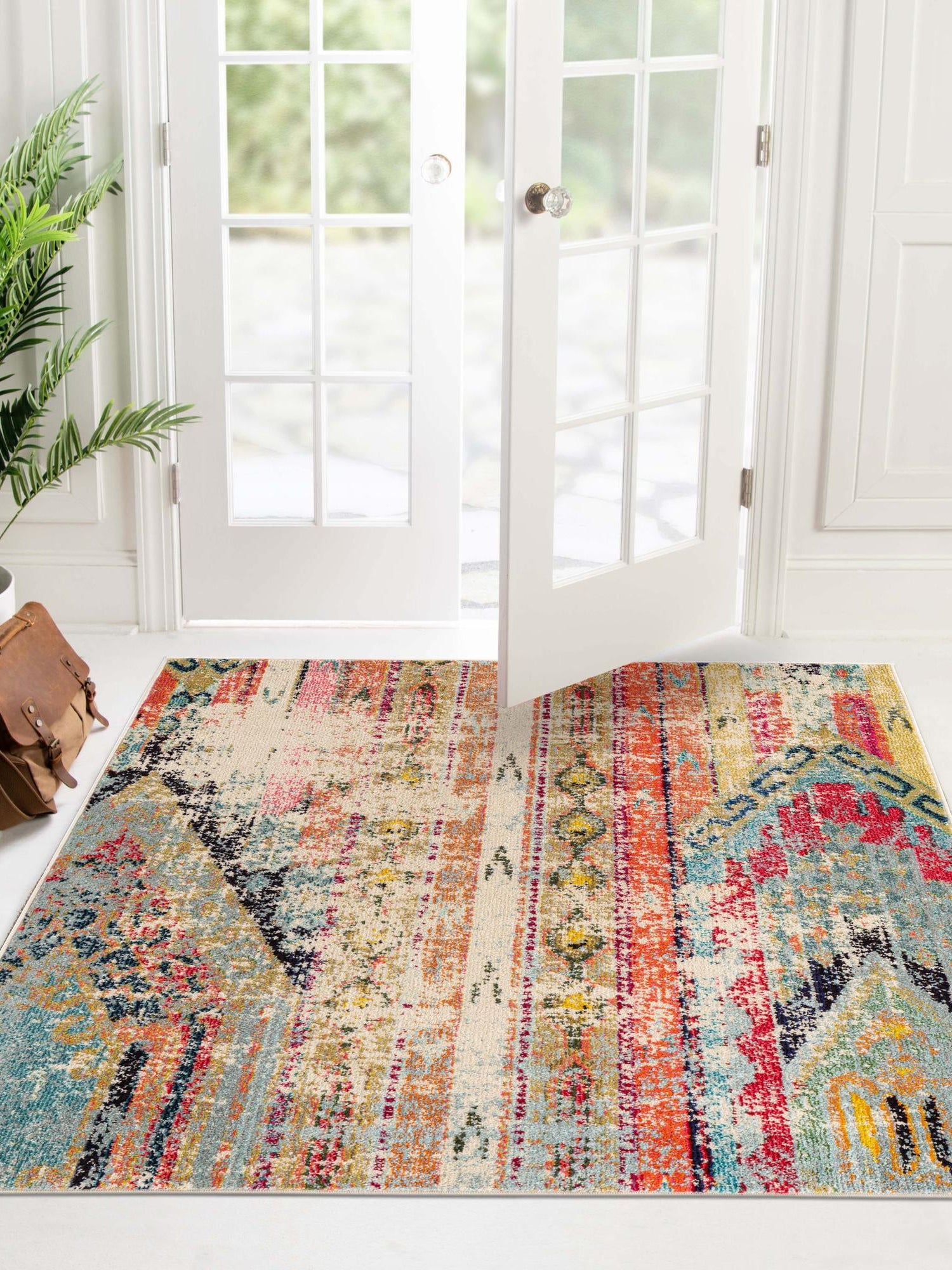 - Vibrant Multicolor Palette: Featuring a stunning array of colors, this rug enhances any room with its lively and eye-catching design. The multicolor effect allows it to easily blend with various interior styles, from modern to eclectic. Make a bold statement in your home with this unique and vibrant centerpiece.