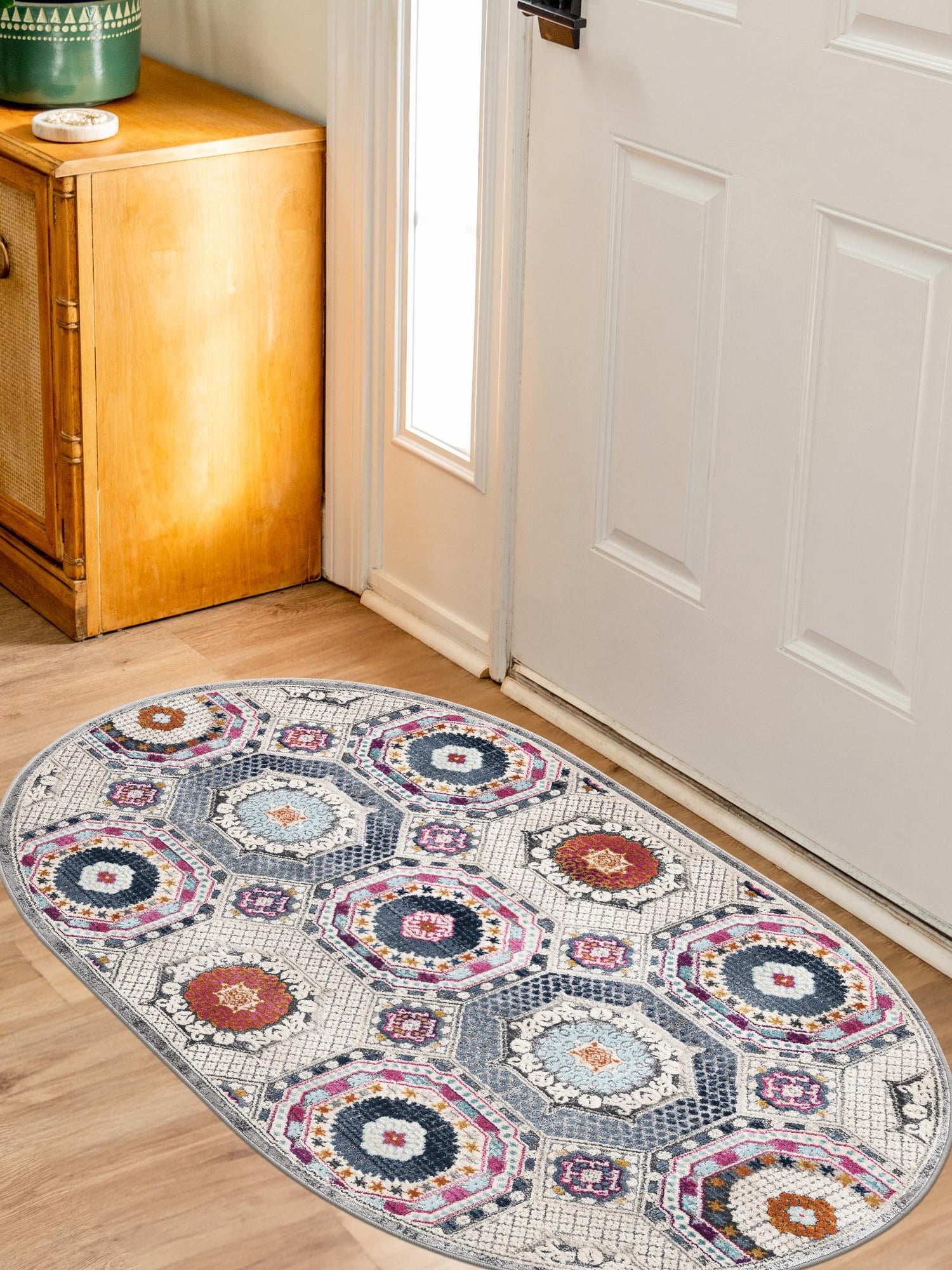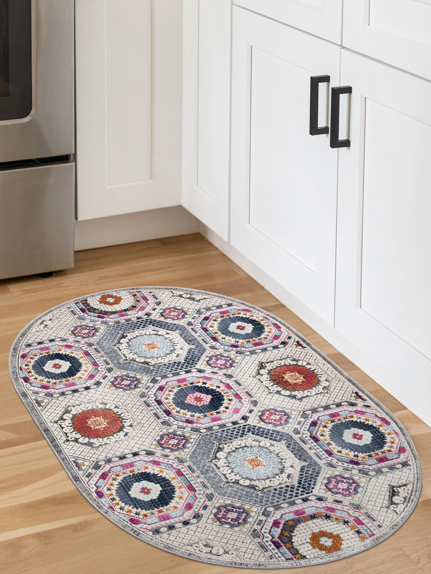 - Perfect Dimensions: Measuring 3' 7" x 5' 3", this oval rug is ideal for various settings, providing ample coverage without overwhelming your space. Its versatile shape ensures it fits beautifully in both traditional and modern decor. Enhance your living room, bedroom, or hallway with this chic addition.