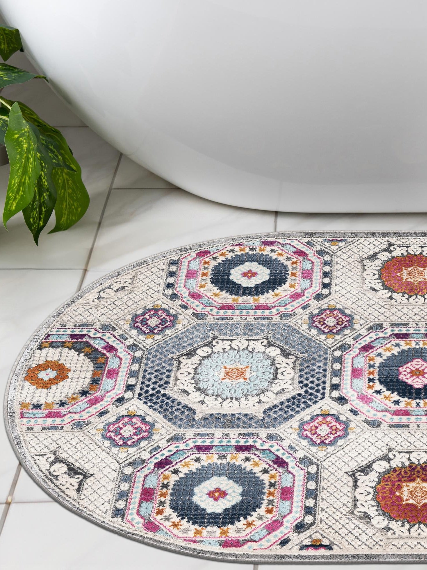 Washable Multicolor 5' x 5' Timeless Round Area Rug Easy to Clean Stain Resistant & Durable