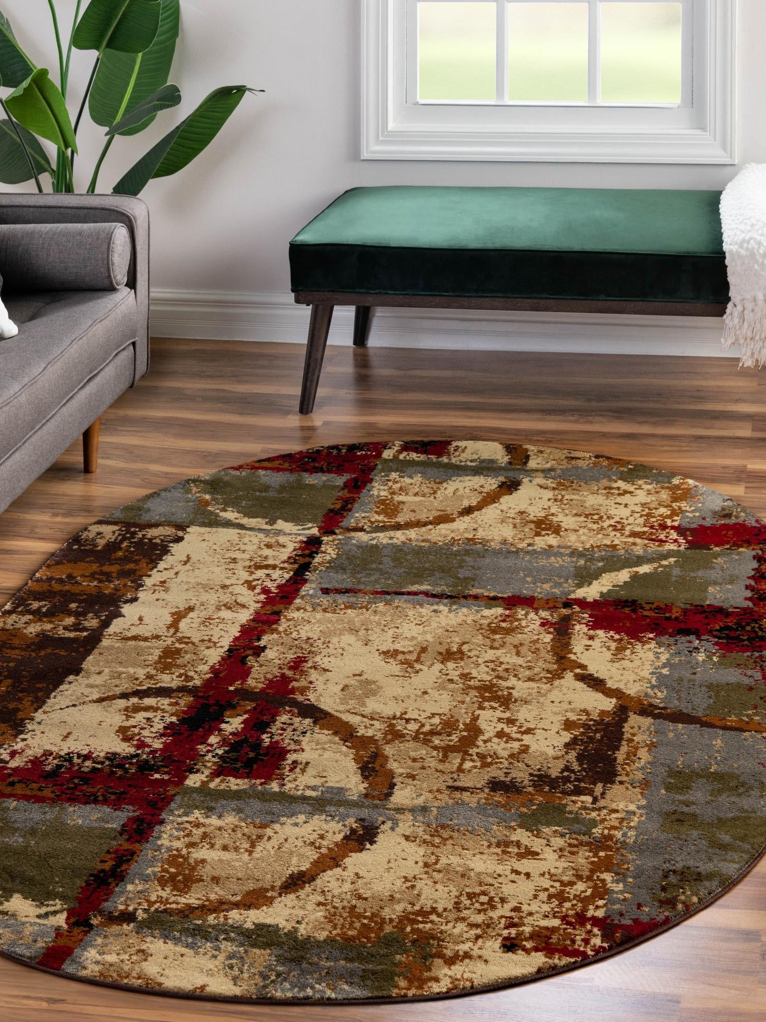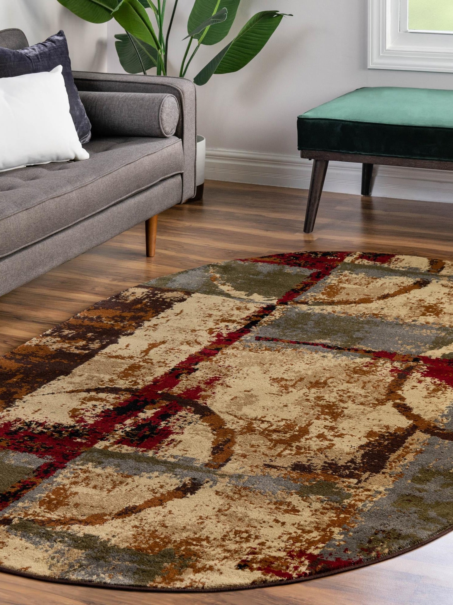 Washable Multicolor 5' x 5' Timeless Round Area Rug Easy to Clean Stain Resistant & Durable