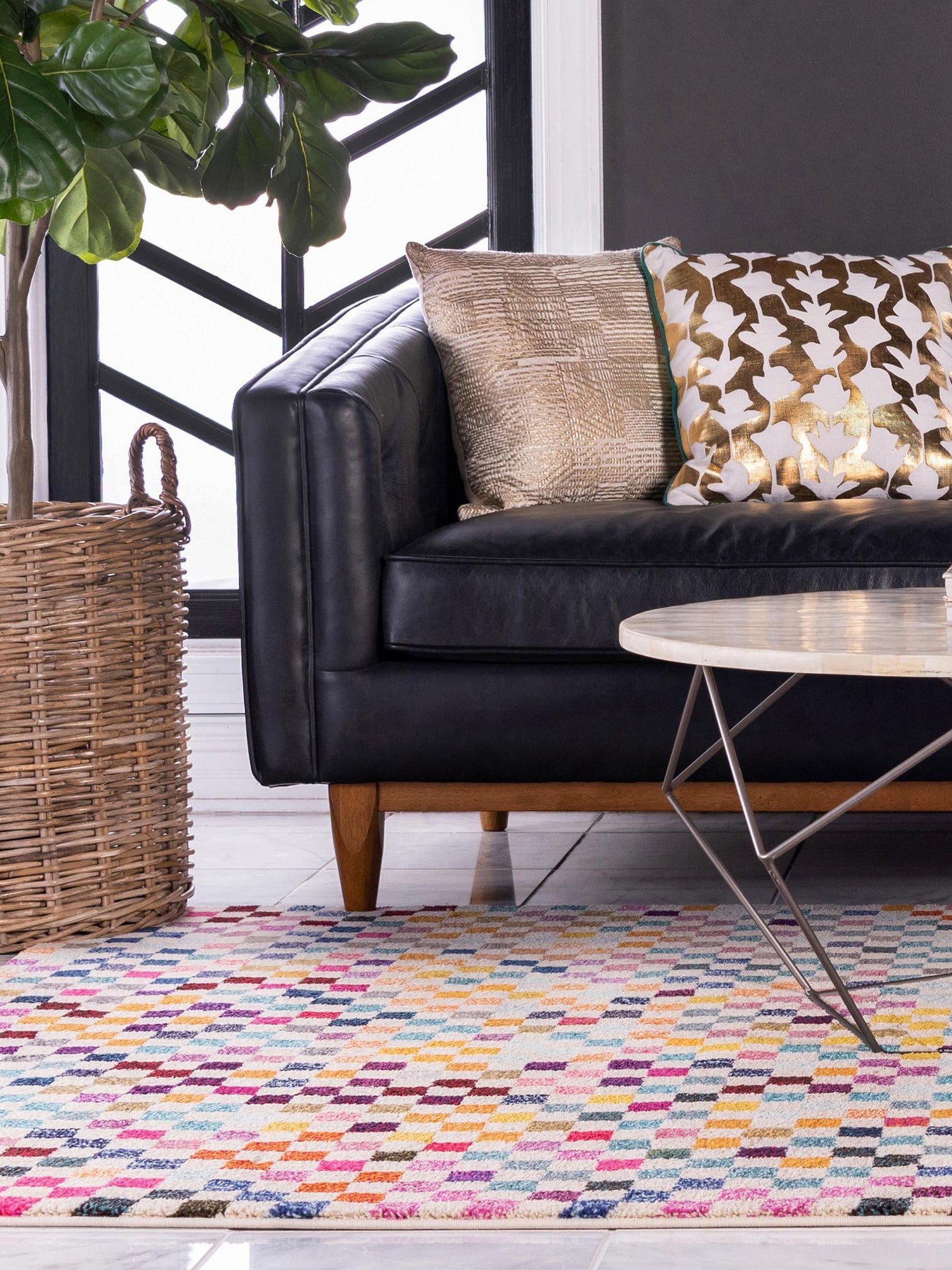 - Vibrant Multicolor Design: Featuring a stunning array of colors, this rug adds a pop of color to any space, lending a modern and stylish flair. The multi-hued design is not only visually striking but also complements a variety of interior styles, from contemporary to eclectic. Make a bold statement and transform your space with this eye-catching rug.