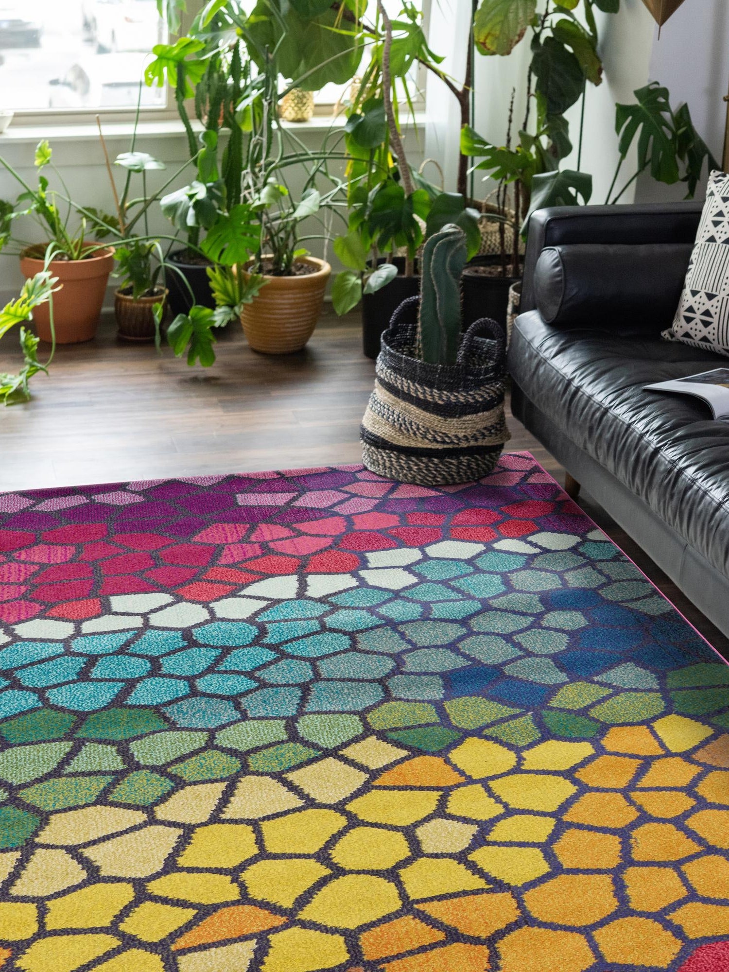 - Vibrant Multicolor Design: The rug features a stunning multi-colored pattern that can brighten up any room. Its lively colors are carefully crafted to complement a variety of decor styles, making it easy to integrate into your existing design. The bold aesthetic adds personality and warmth, creating a welcoming atmosphere in your home.