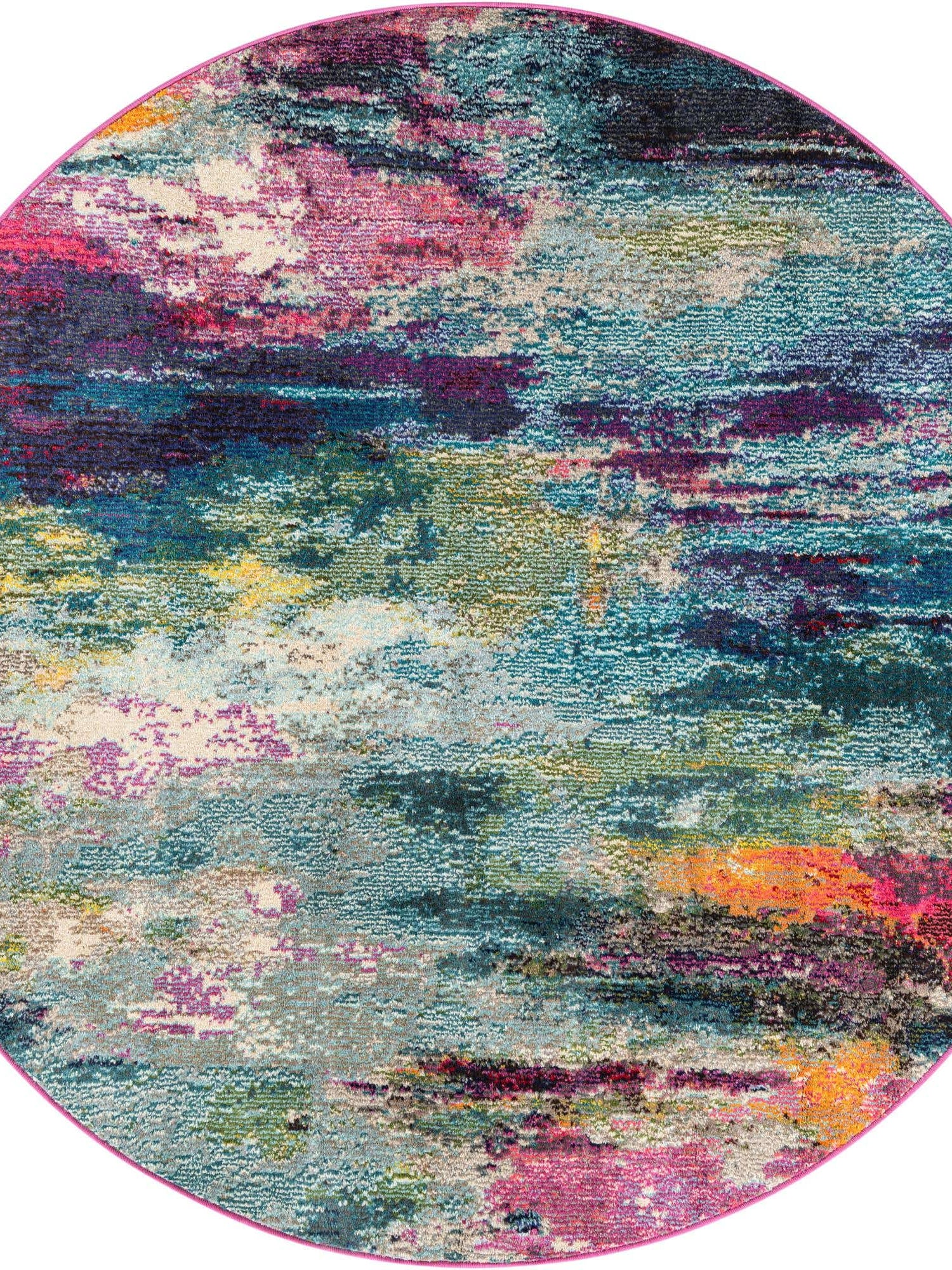 Multicolor 5' 3 x 5' 3 Chromatic Round Area Rug 100% Polypropylene With Cotton Backing Abstract Modern Colorful Carpet Mat for Home Decor & Interior Design