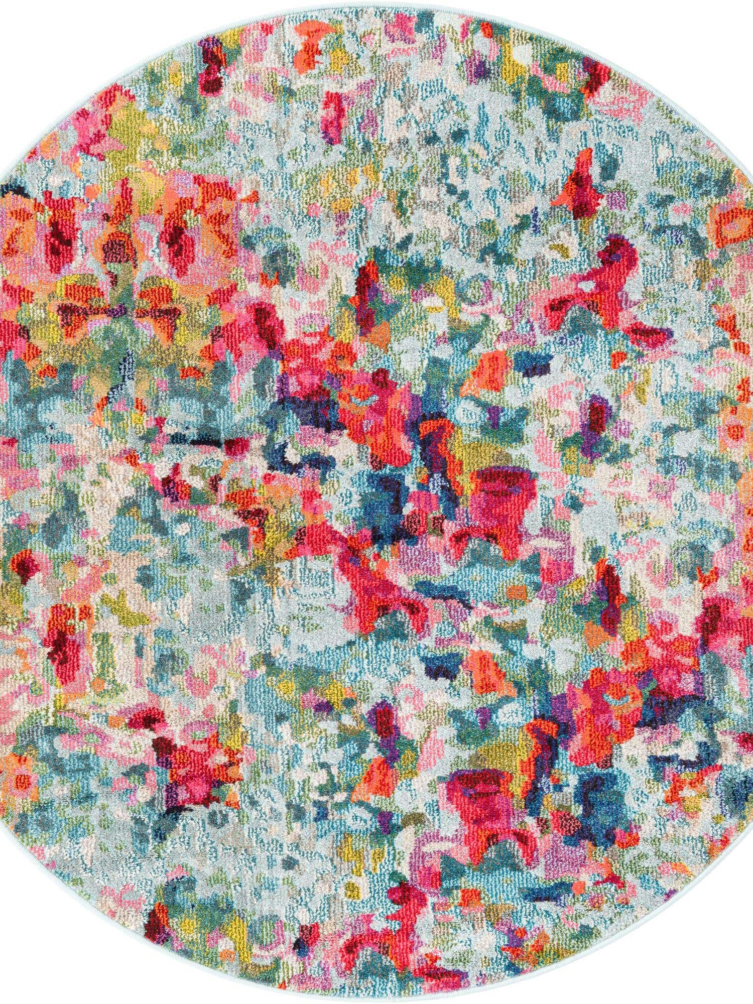 Multicolor 5' 3 x 5' 3 Chromatic Round Area Rug 100% Polypropylene With Cotton Backing Abstract Modern Colorful Carpet Mat for Home Decor & Interior Design
