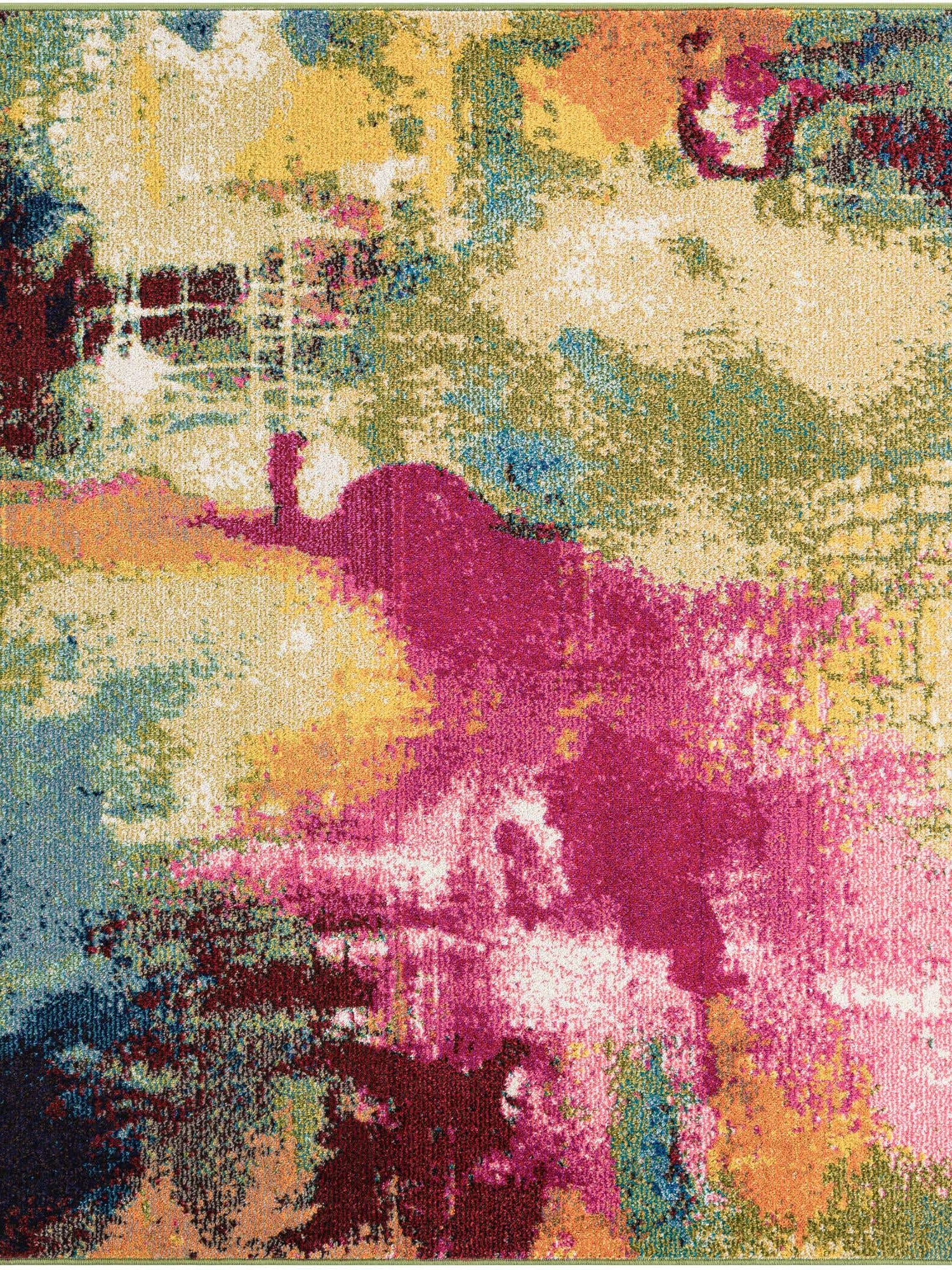 Multicolor 5' 3 x 5' 3 Estrella Square Area Rug 100% Polypropylene Non-Shedding Stain Resistant Carpet Colorful Modern Abstract Design Easy Clean for Home Decor