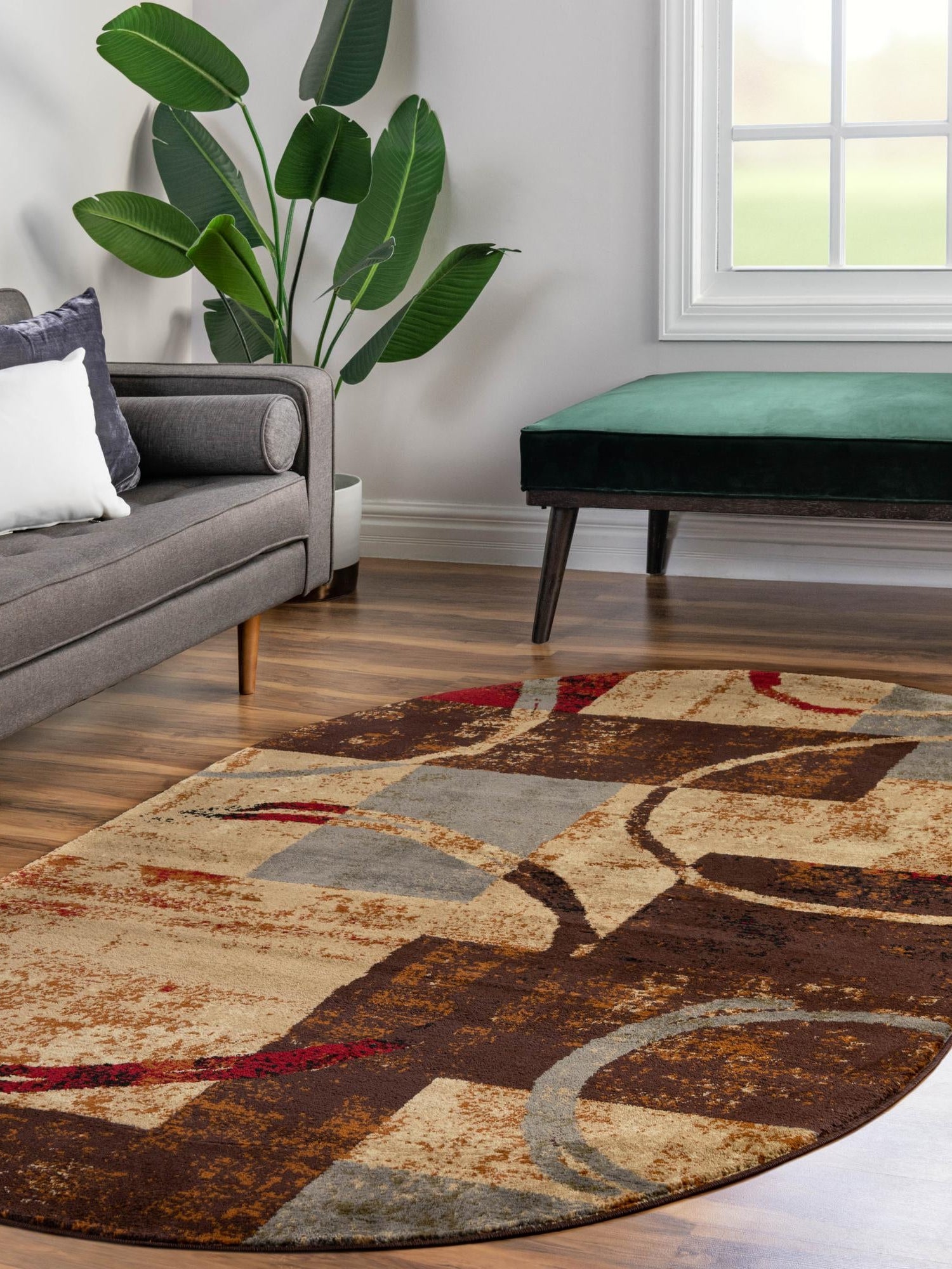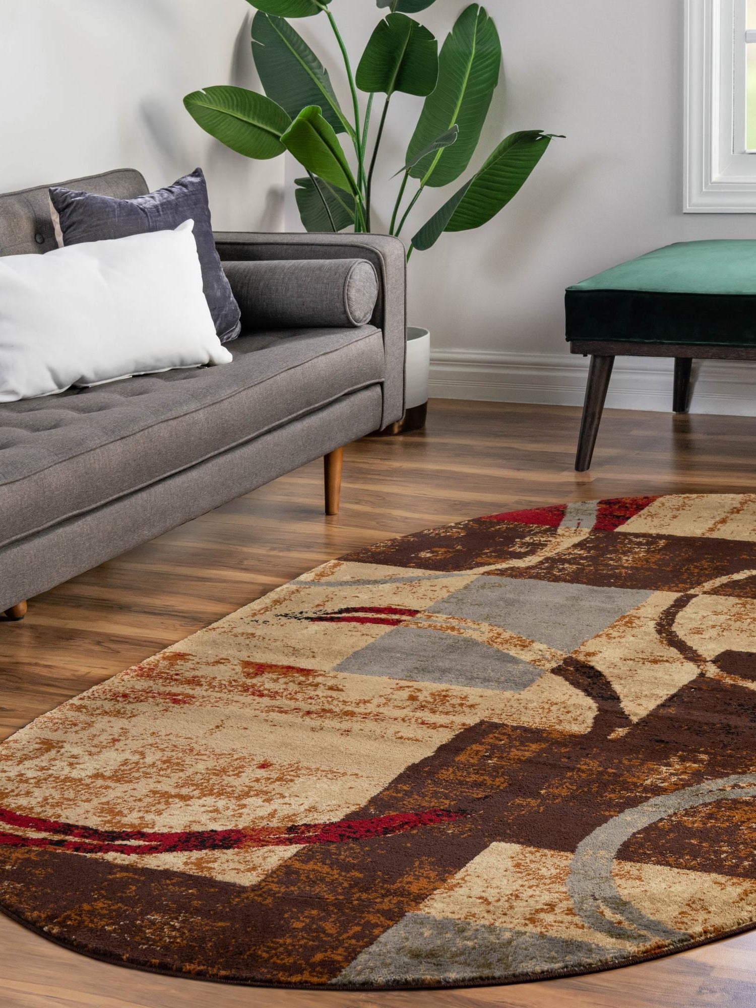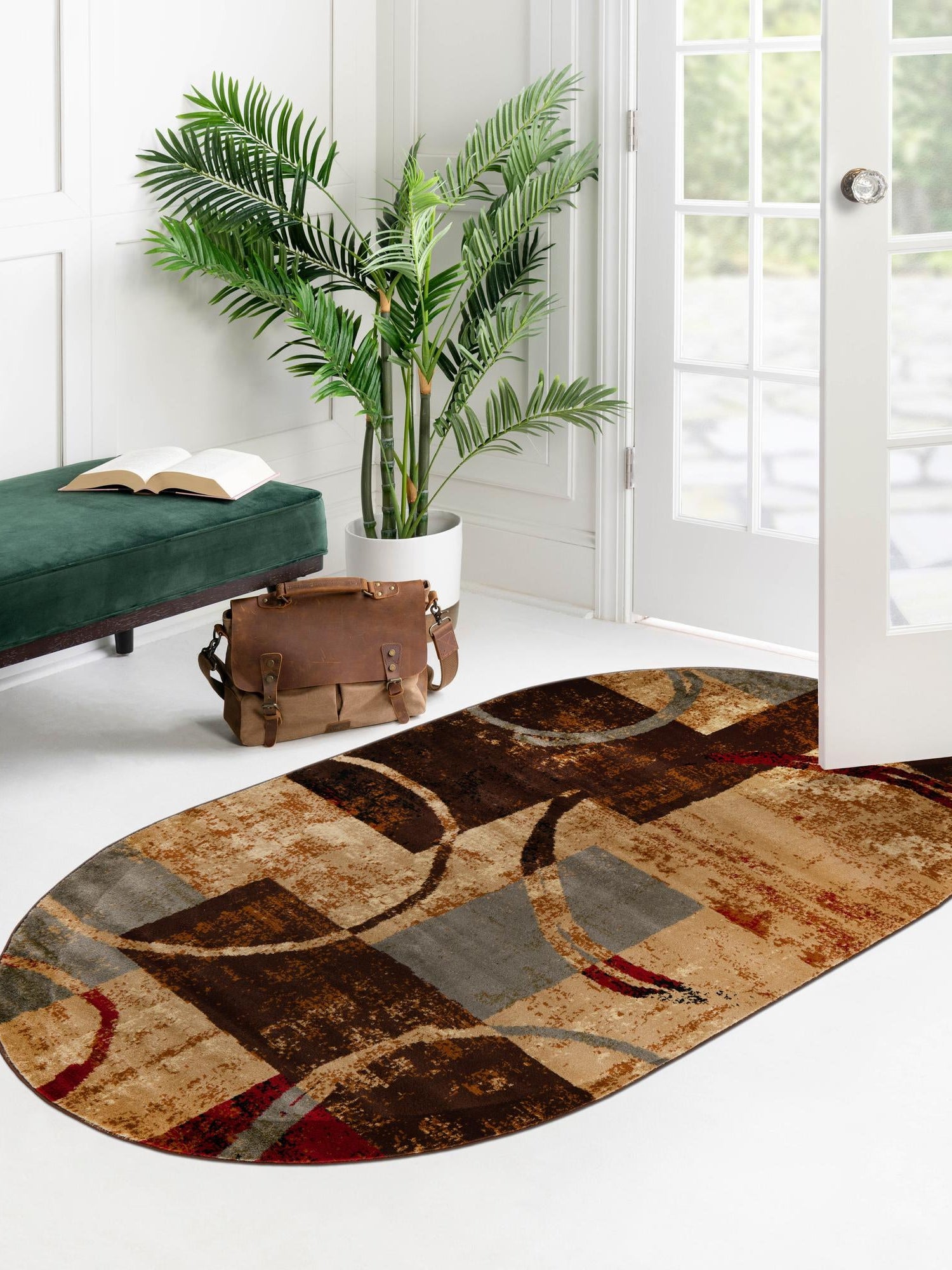 Multicolor 5' 3 x 8' Barista Oval Area Rug 100% Polypropylene Abstract Modern Geometric Carpet for Living Room Dining Office Dorm Room Decor