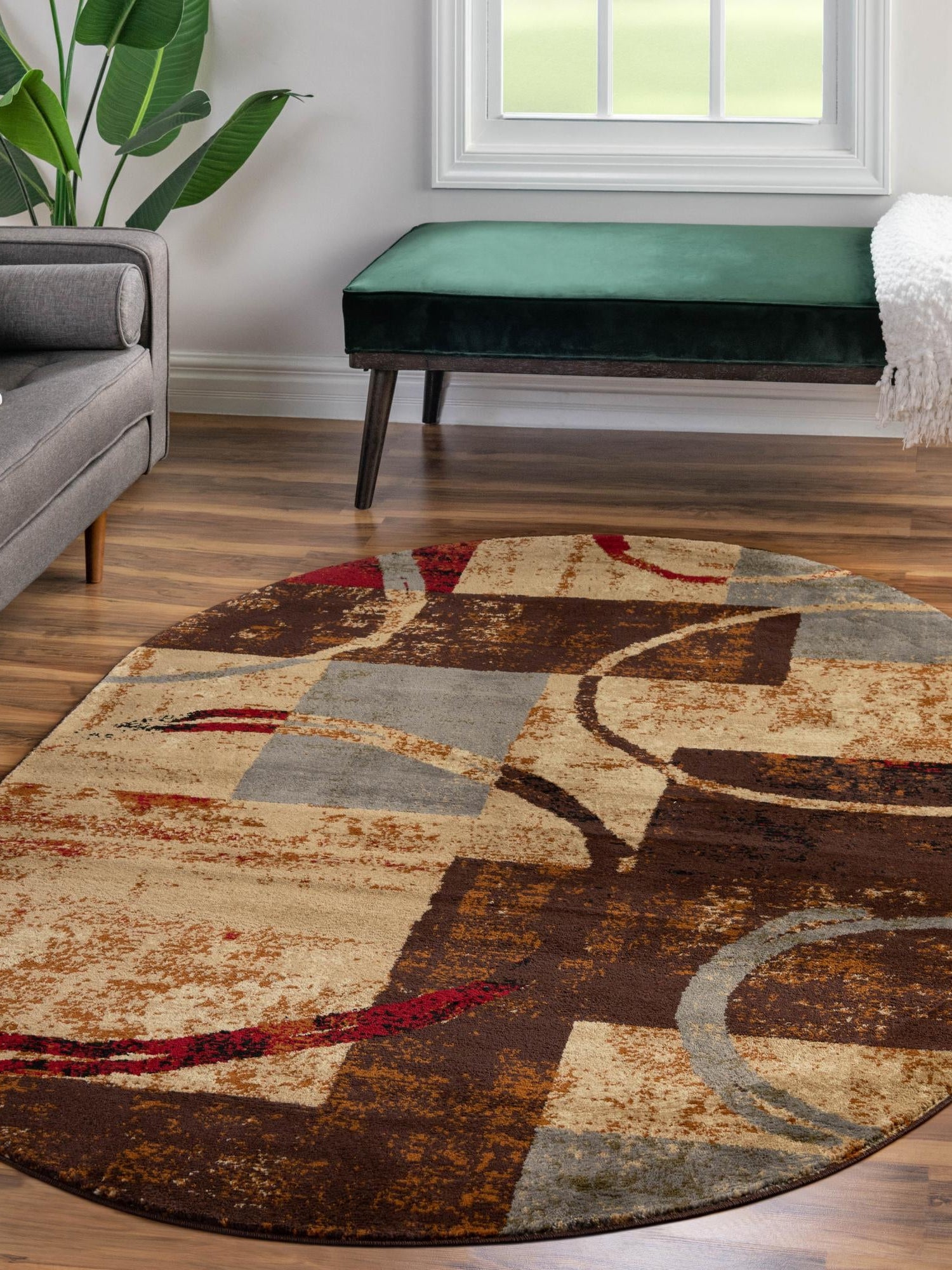 Washable Multicolor 5' x 5' Timeless Round Area Rug Easy to Clean Stain Resistant & Durable