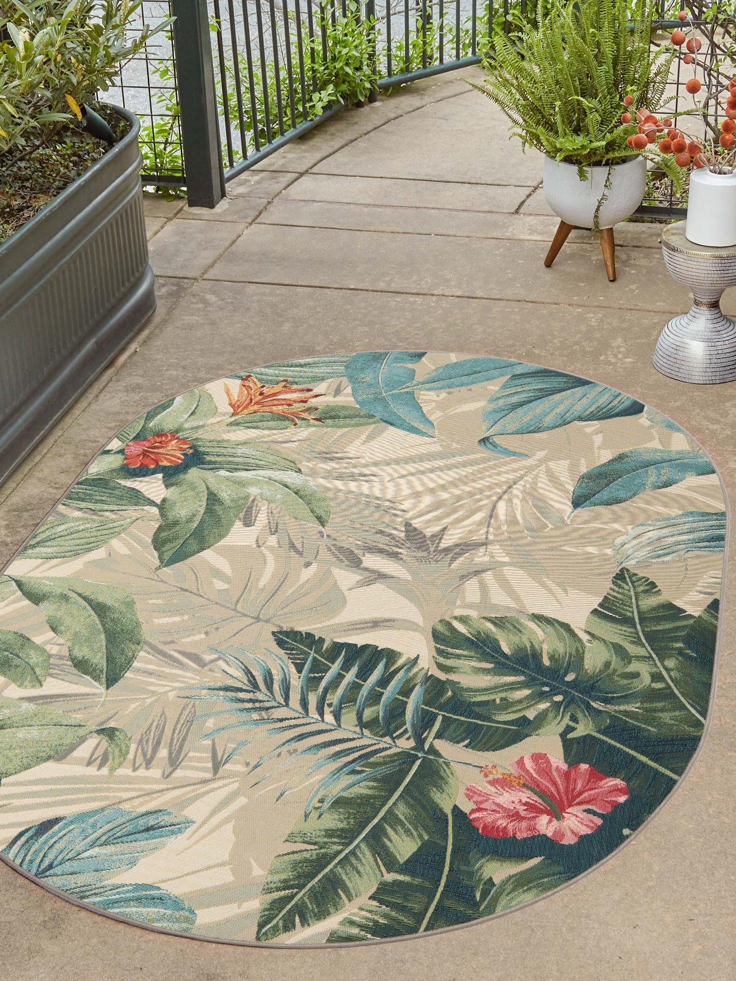 - Generous Size: Measuring at 5' 3" x 8' 0", this oval rug is the perfect addition to your outdoor spaces. Its ample dimensions provide both comfort and style, making it an ideal choice for patios, decks, or gardens. Enhance your outdoor living area with a piece that complements your lifestyle.