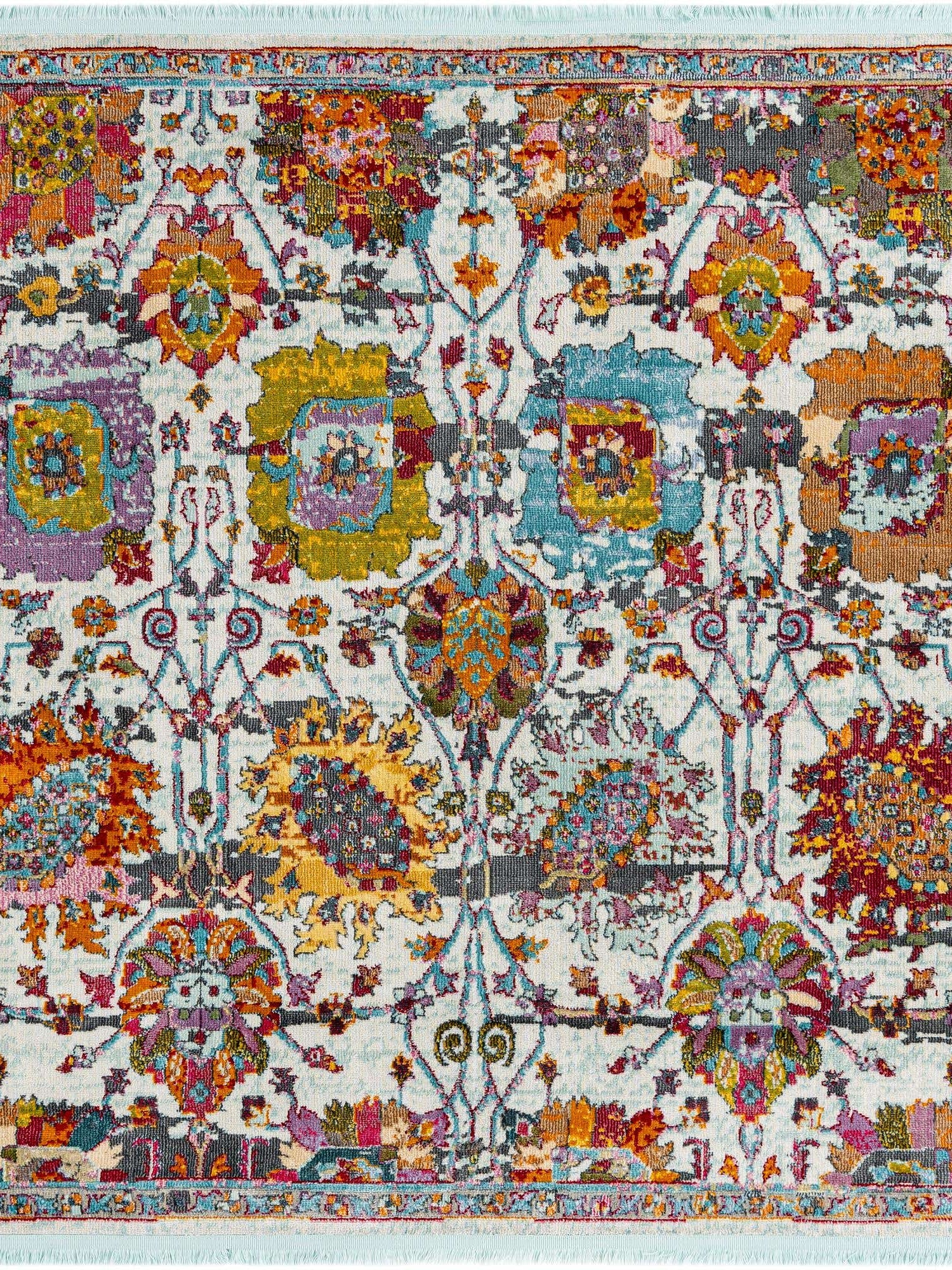 - Vibrant Multi-Color Design: The rug boasts a rich, multicolor palette that brings life and energy to your decor. Each color is thoughtfully incorporated to create a harmonious and appealing aesthetic. Ideal for contemporary and vintage-themed settings, this rug effortlessly complements a wide range of design styles.