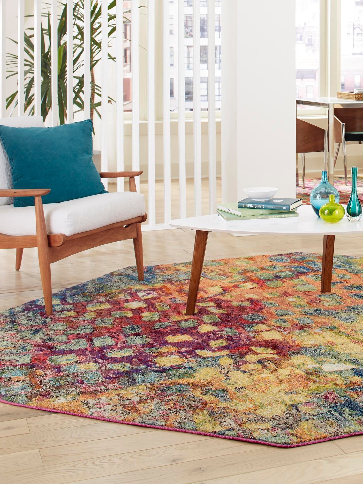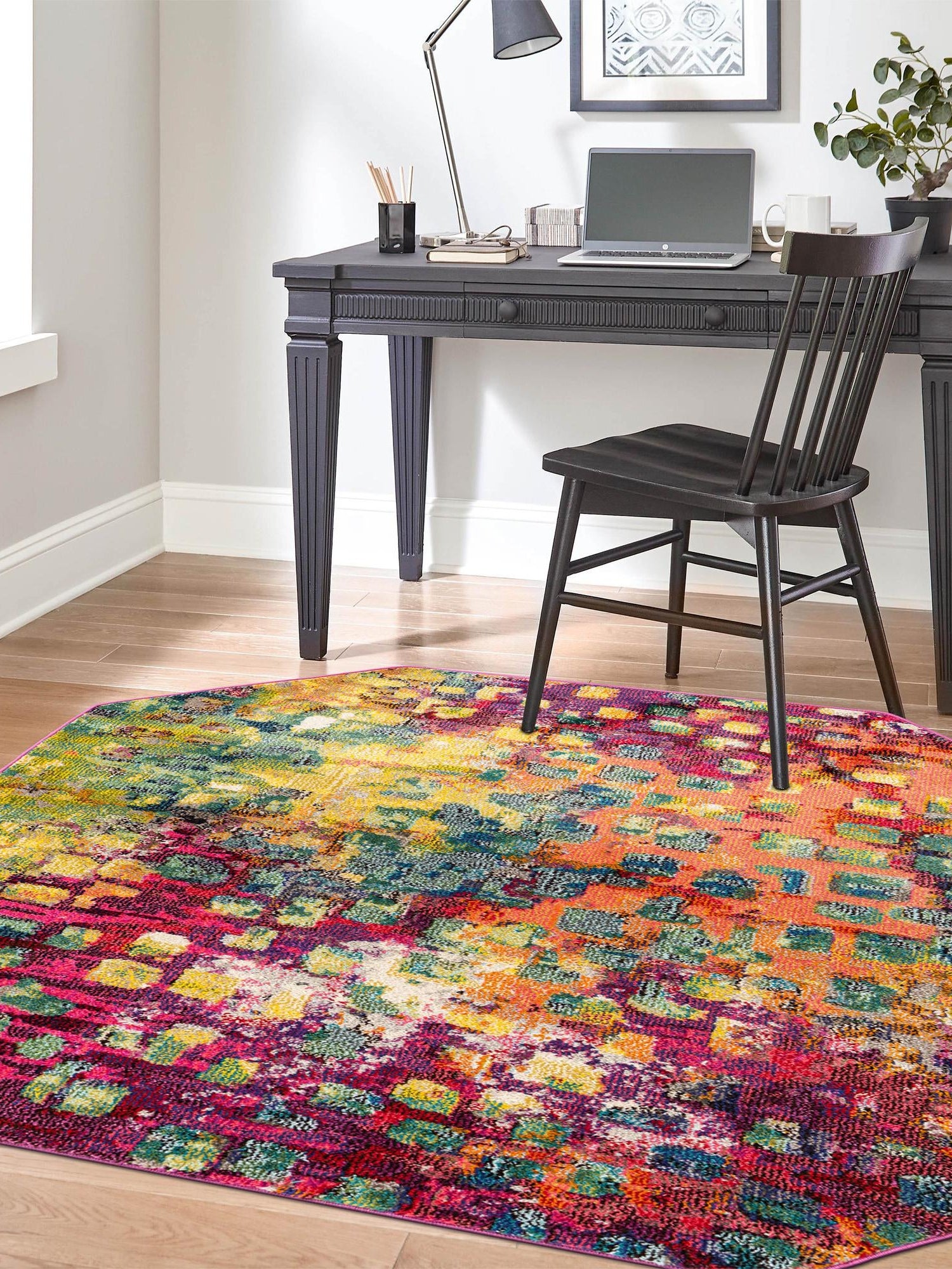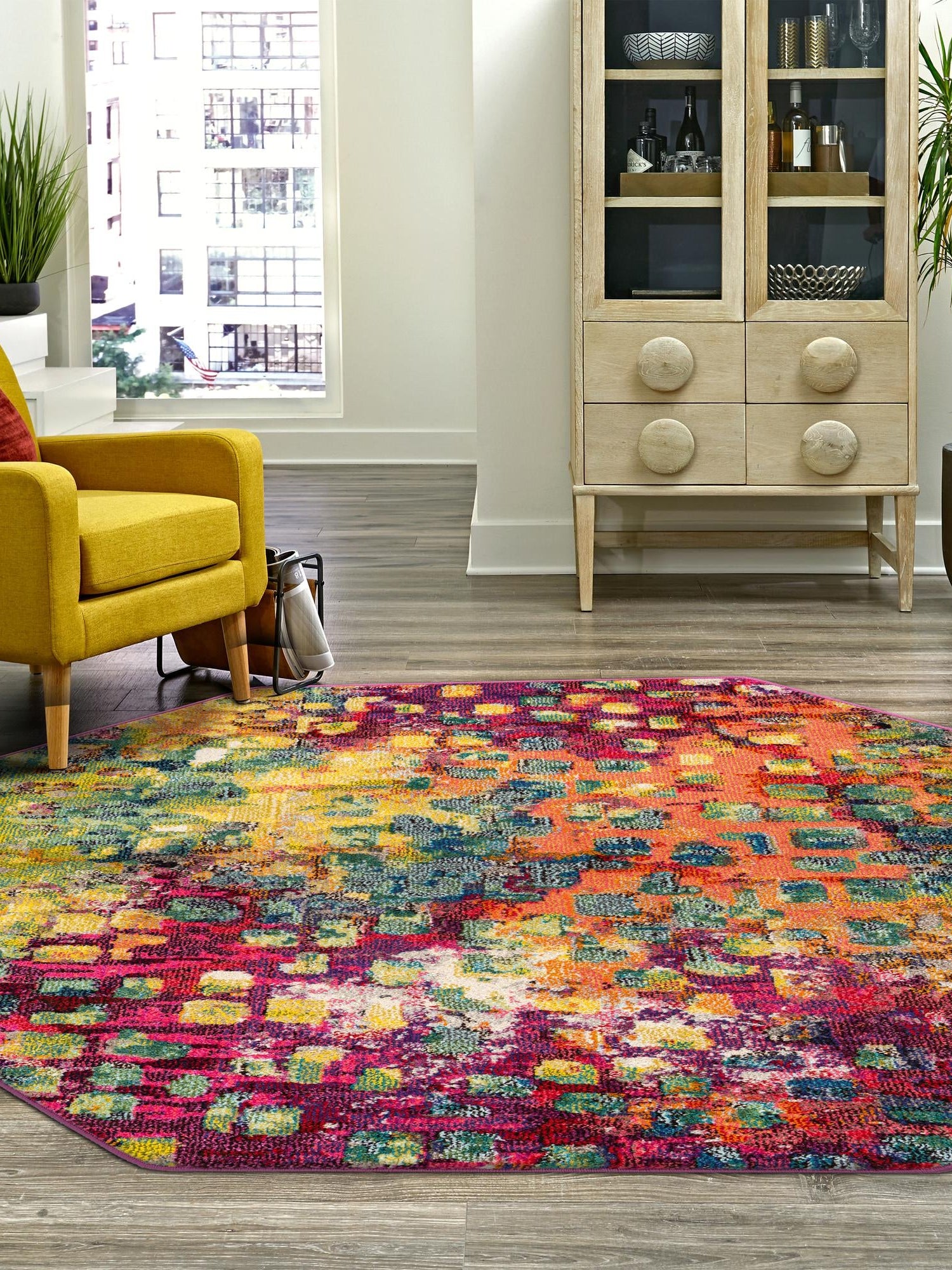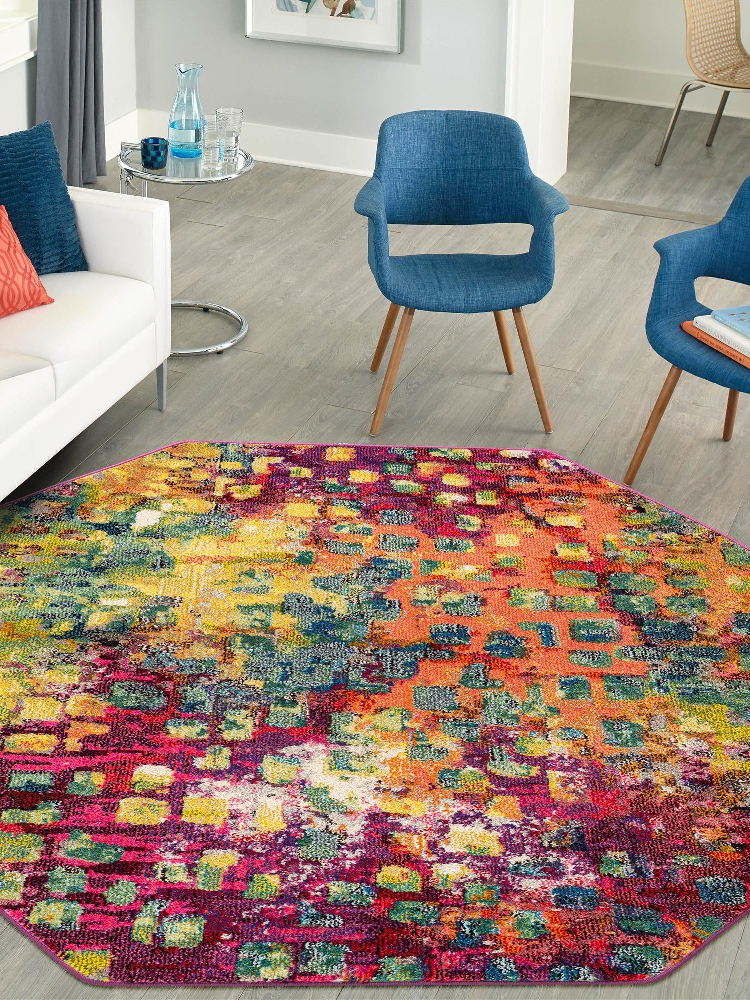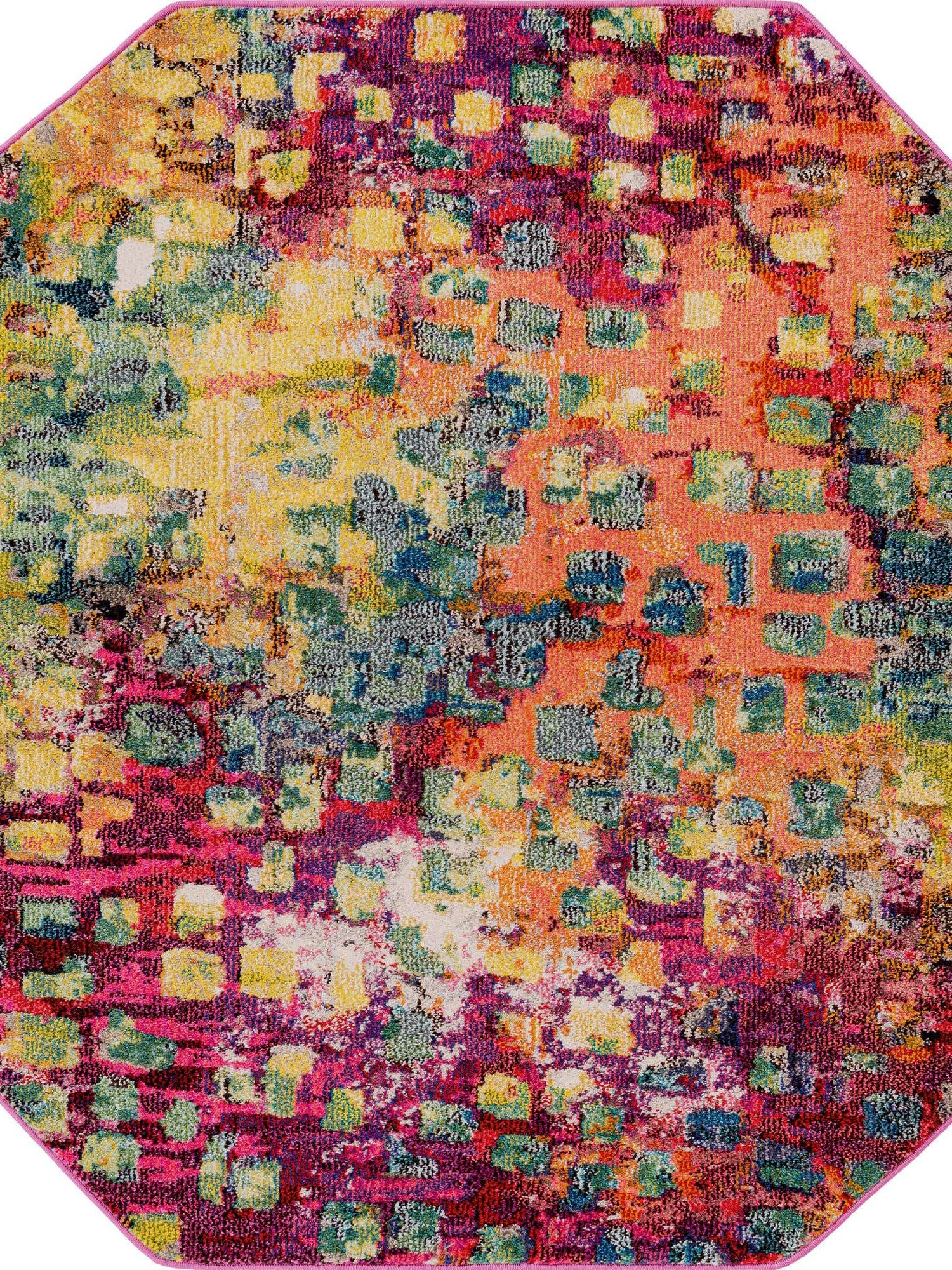 Multicolor 5' x 5' Jardin Octagon Area Rug 100% Polypropylene With Cotton Backing Colorful & Vivid Modern Carpet for Home Decor