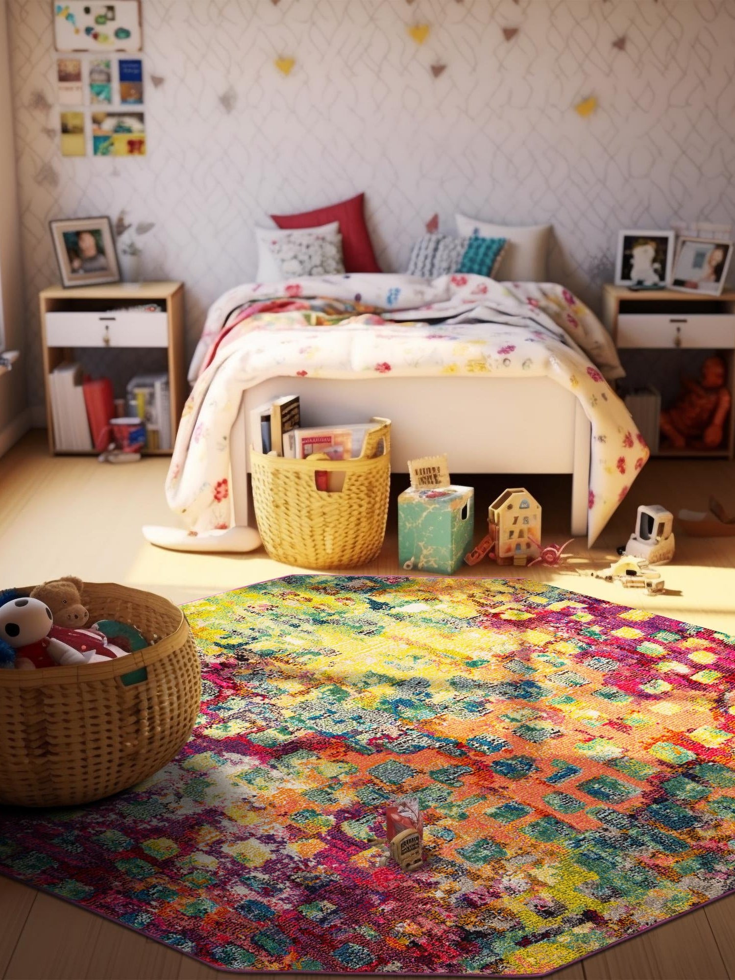 - Vibrant Multi-Color Design: Featuring a stunning array of colors, this rug can effortlessly enhance the aesthetic of any room. The eye-catching hues are perfect for complementing modern decor styles while adding a playful element. Transform your space into a lively and inviting environment with this beautiful piece.
