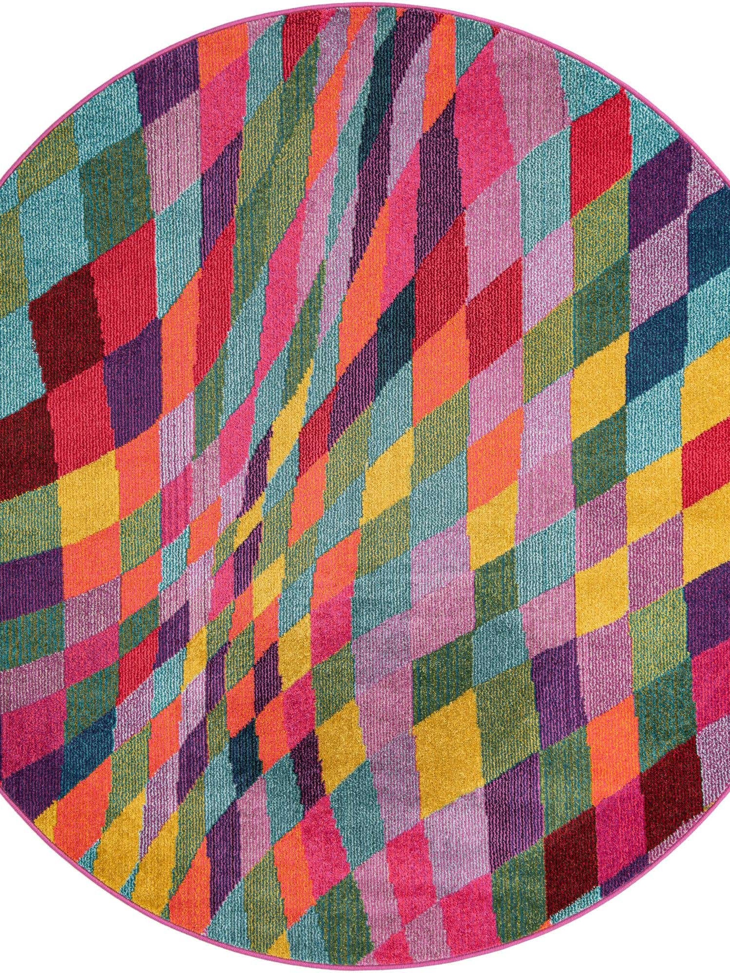 Multicolor 6' 1 x 6' 1 Estrella Round Area Rug 100% Polypropylene Non-Shedding Stain Resistant Carpet Colorful Modern Abstract Design Easy Clean for Home Decor