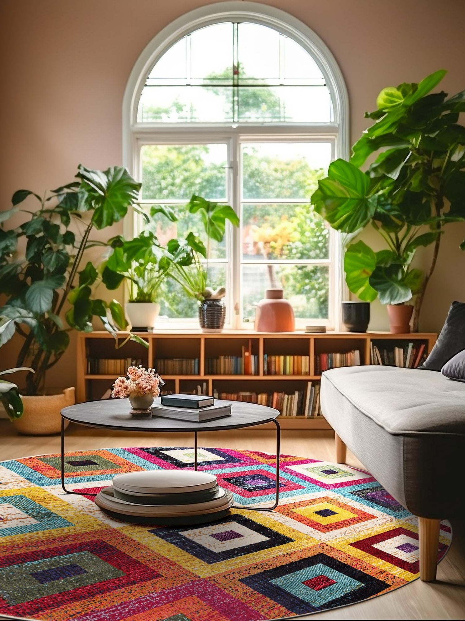 - Vibrant Color Palette - The multicolored design offers a lively and dynamic addition to your decor, catering to diverse aesthetic preferences. This rug can serve as a focal point or seamlessly blend with your existing furnishings. Its vibrant hues are designed to enhance your interior, adding warmth and personality to your space.