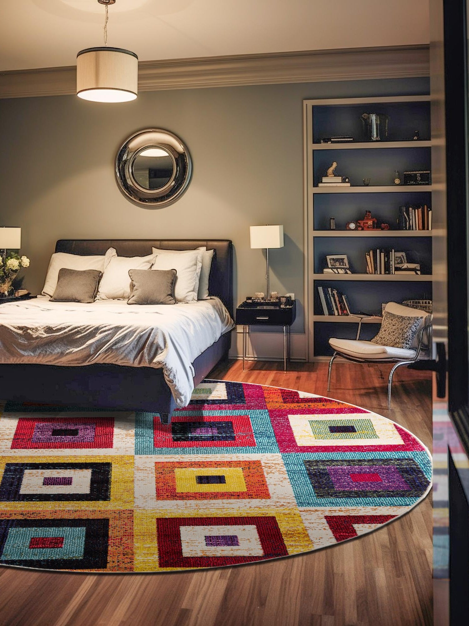 Washable Multicolor 5' x 5' Timeless Round Area Rug Easy to Clean Stain Resistant & Durable