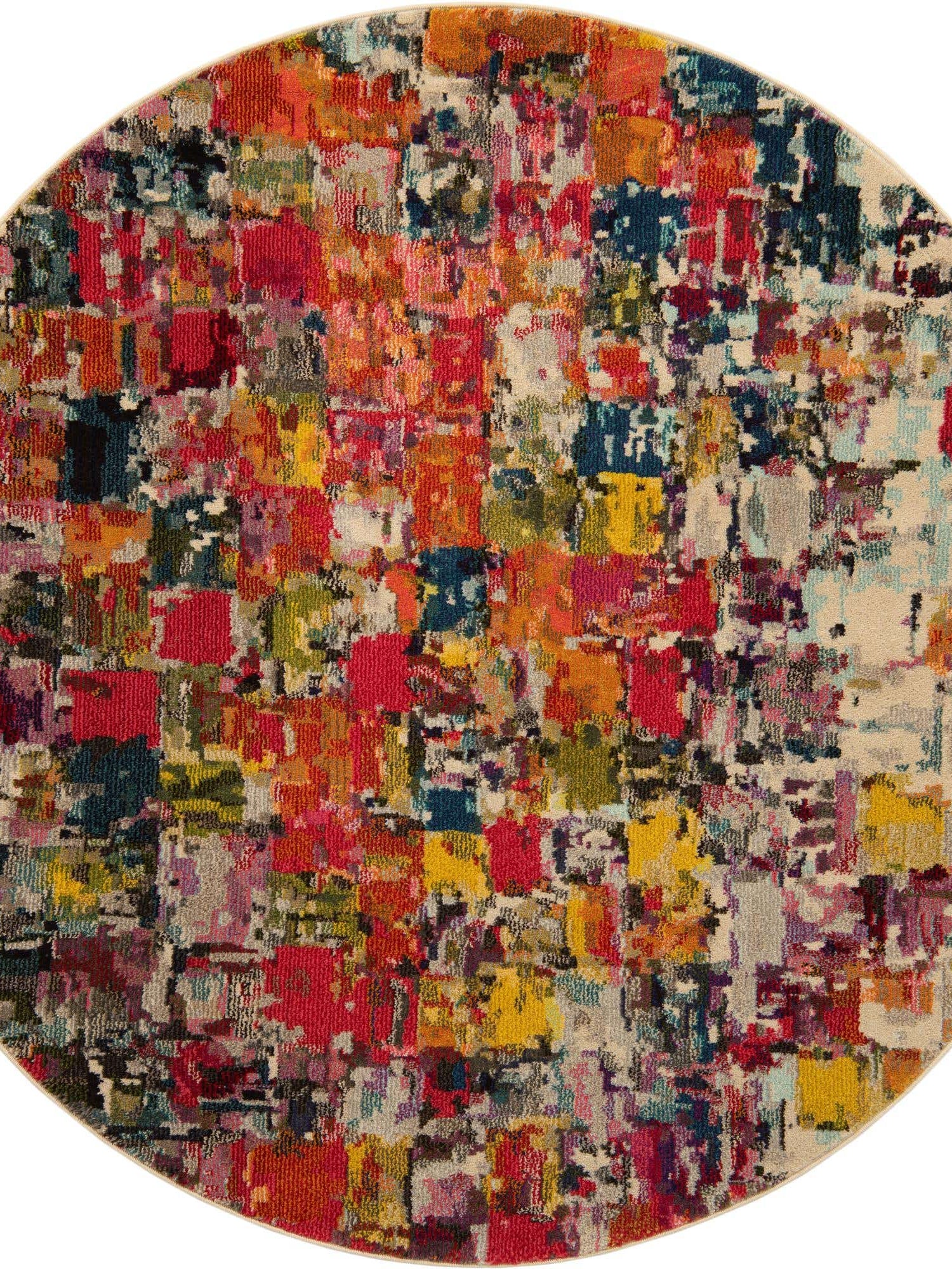 Multicolor 6' 1 x 6' 1 Estrella Round Area Rug 100% Polypropylene Non-Shedding Stain Resistant Carpet Colorful Modern Abstract Design Easy Clean for Home Decor