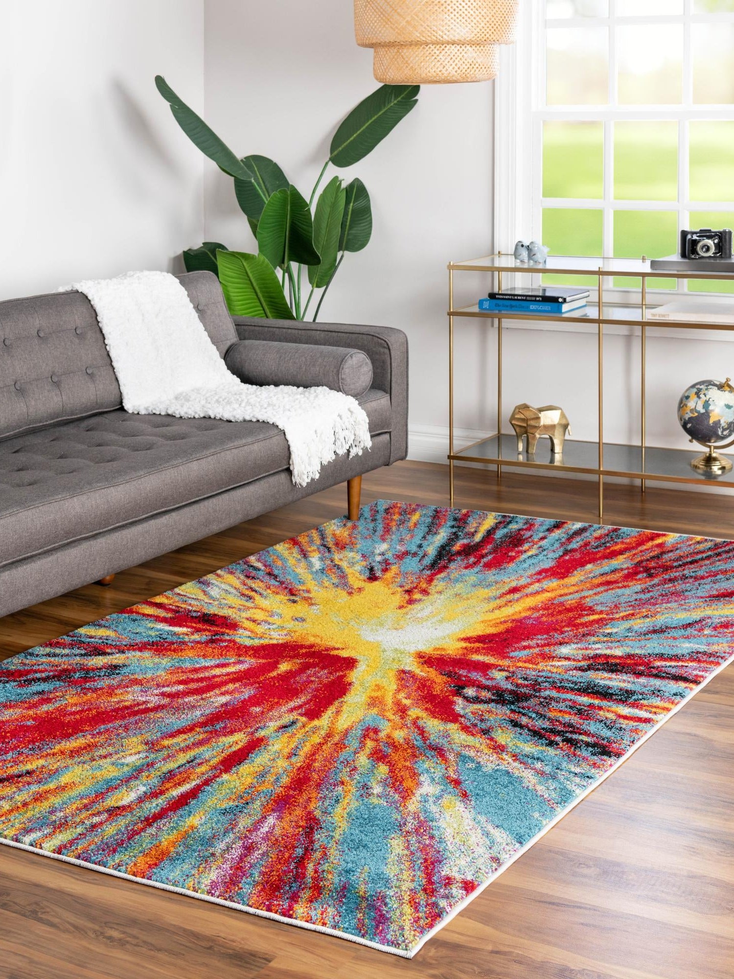 Multicolor 6' 1 x 9' Lyon Rectangle Area Rug Vivid Colorful Abstract Modern 100% Polypropylene Carpet for Living Room, Dining, Office