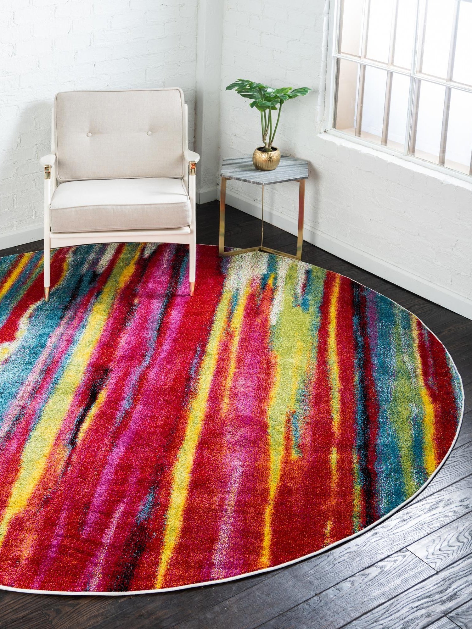 Multicolor 6' x 6' Lyon Round Area Rug Vivid Colorful Abstr...