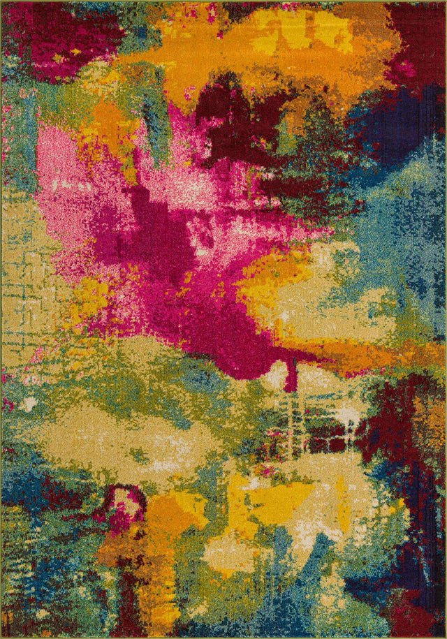 Multicolor 7' 1 x 10' Estrella Rectangle Area Rug 100% Polypropylene Non-Shedding Stain Resistant Carpet Colorful Modern Abstract Design Easy Clean for Home Decor