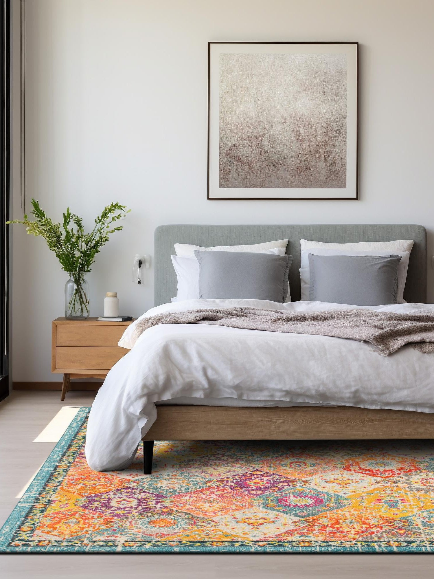 - Vibrant Multicolor Design: Featuring a captivating multicolor pattern, this rug adds a pop of personality to your home. The modern design seamlessly blends with various interior styles, from contemporary to eclectic. Transform your space with a bold statement piece that complements your existing furnishings.