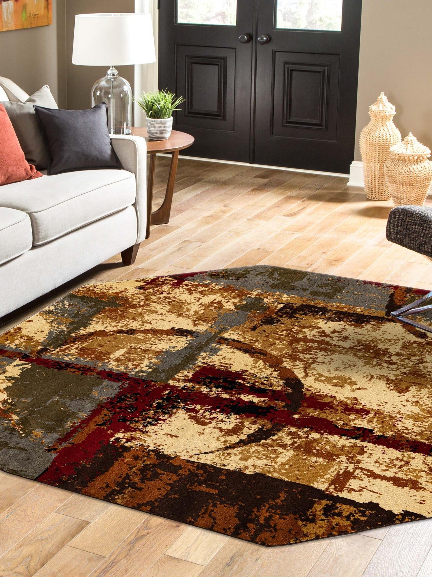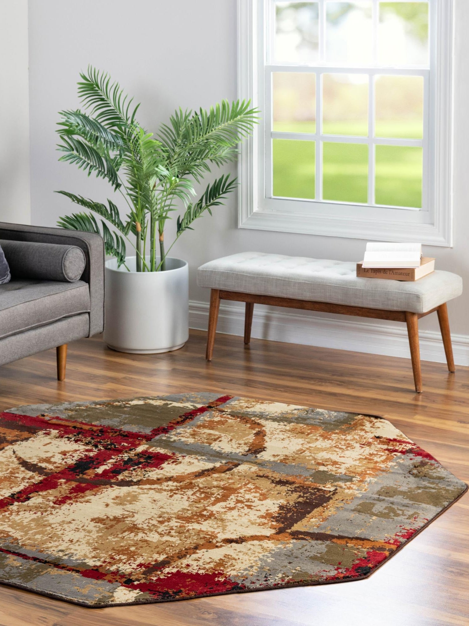 Multicolor 7' 1 x 7' 1 Barista Octagon Area Rug 100% Polypropylene Abstract Modern Geometric Carpet for Living Room Dining Office Dorm Room Decor