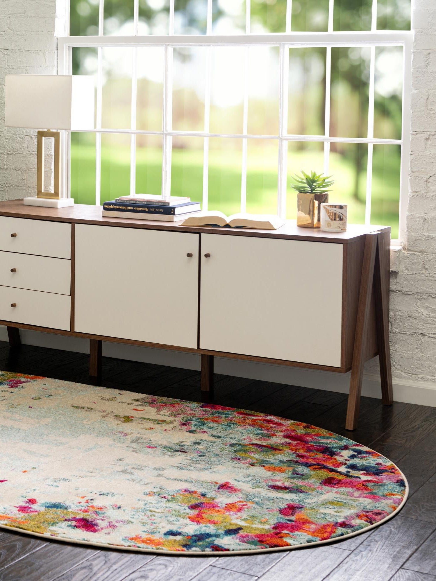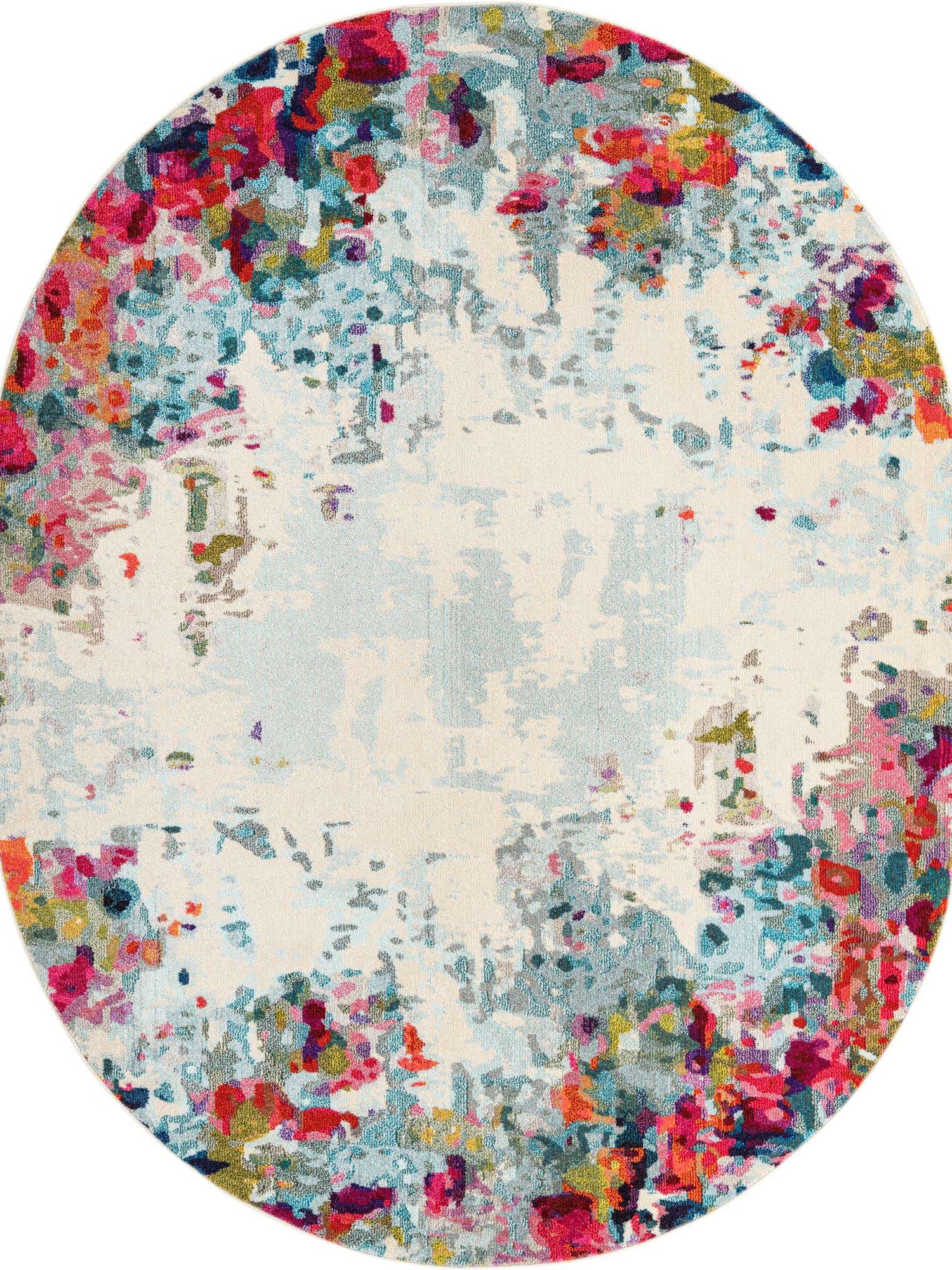 Multicolor 7' 11 x 10' Chromatic Oval Area Rug 100% Polypropylene With Cotton Backing Abstract Modern Colorful Carpet Mat for Home Decor & Interior Design