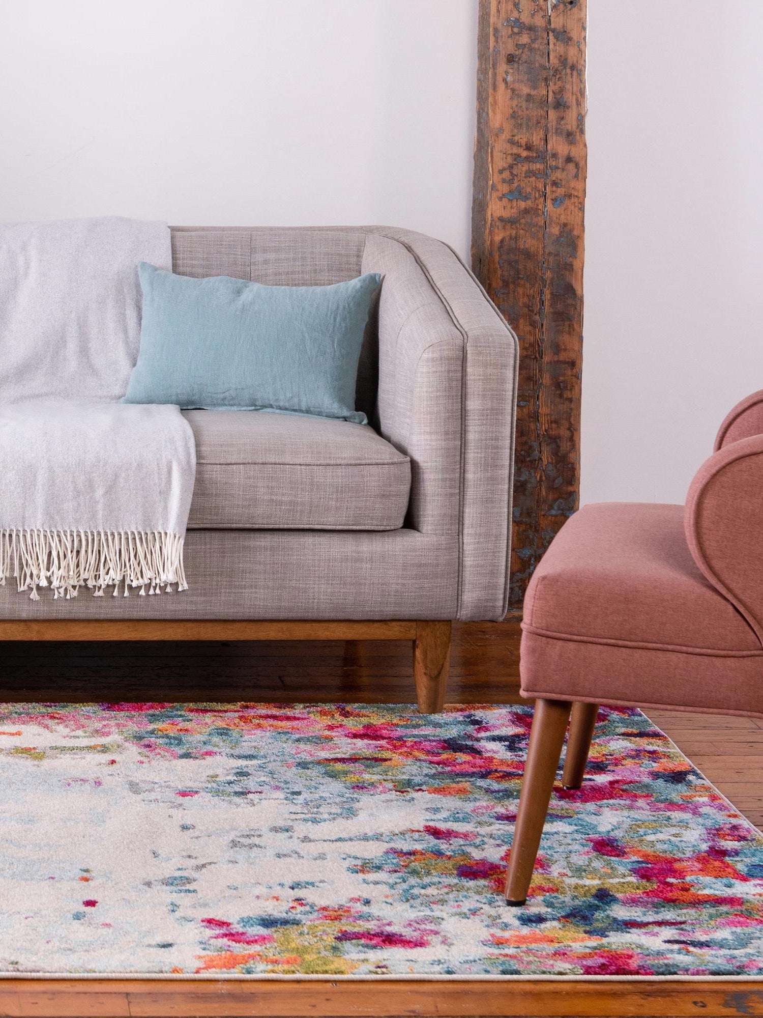 Multicolor 8' x 10' Chromatic Rectangle Area Rug 100% Polypropylene With Cotton Backing Abstract Modern Colorful Carpet Mat for Home Decor & Interior Design
