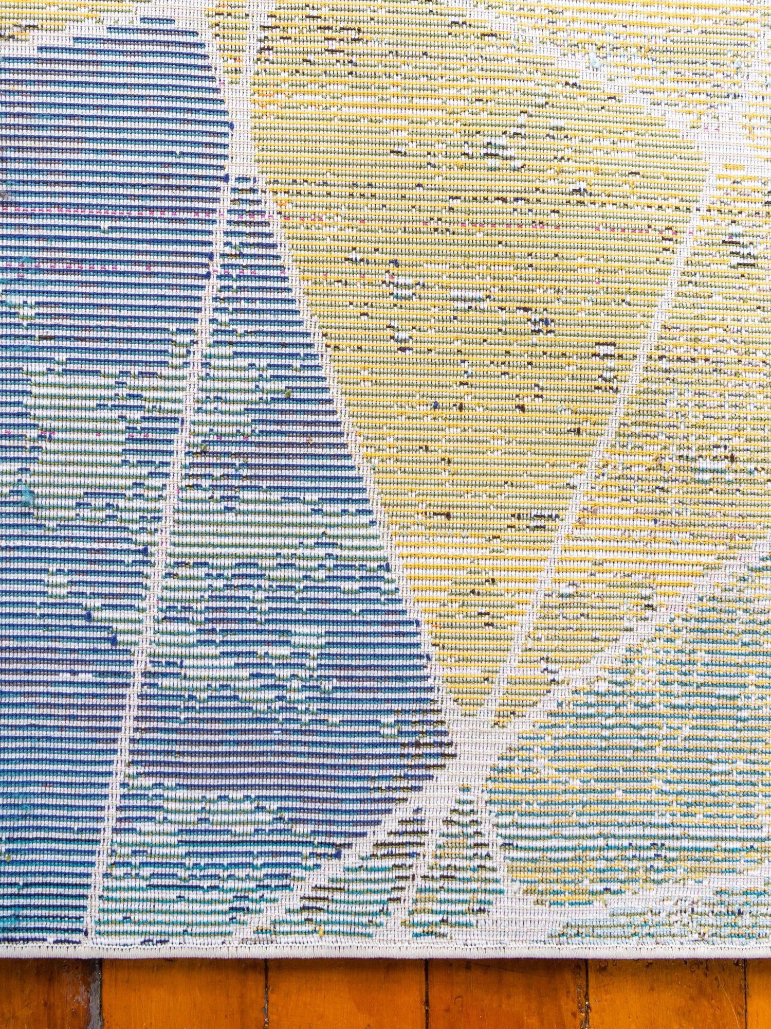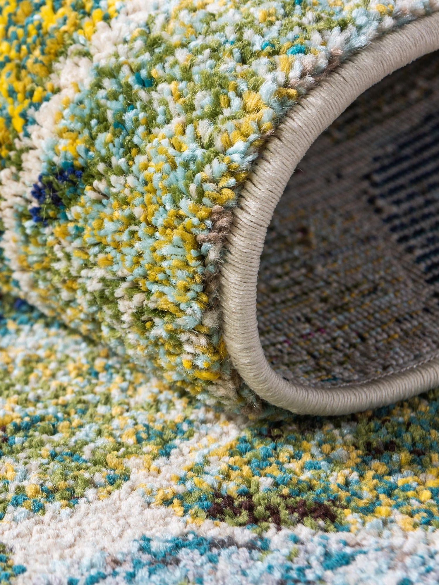 - Vibrant Multicolor Design: The multi-colored palette is designed to complement a variety of decor styles, adding a touch of modern elegance to your space. Each hue is carefully chosen to create a dynamic visual impact that can brighten up any room. Showcase your unique taste with this eye-catching rug that serves as art for your floor.