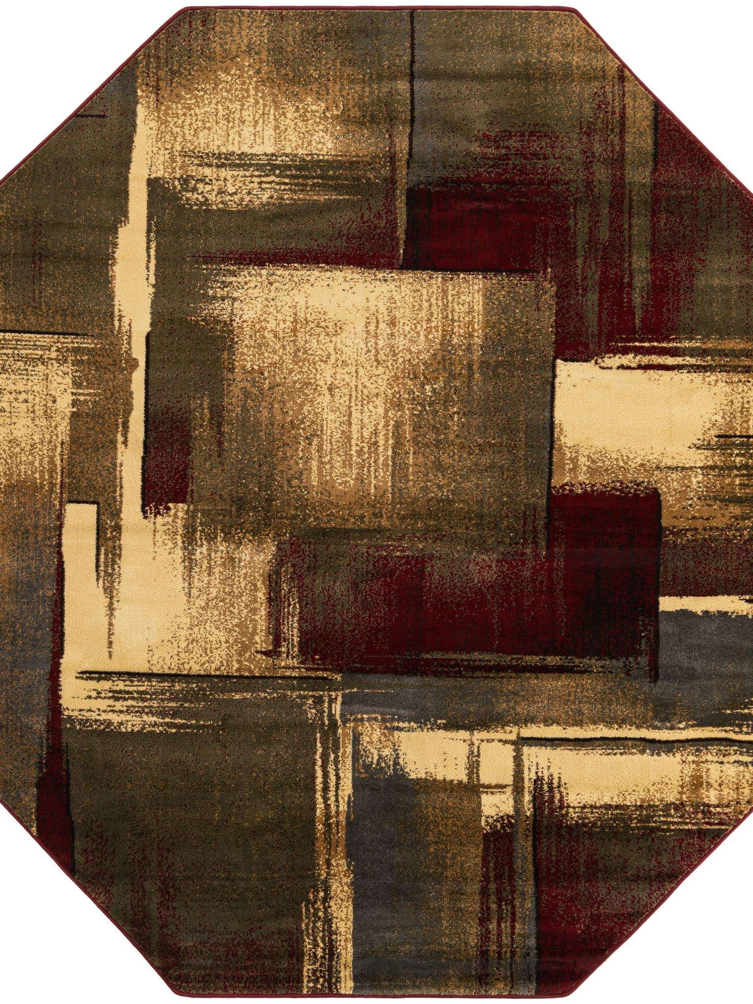 Multicolor 7' 10 x 7' 10 Barista Octagon Area Rug 100% Polypropylene Abstract Modern Geometric Carpet for Living Room Dining Office Dorm Room Decor