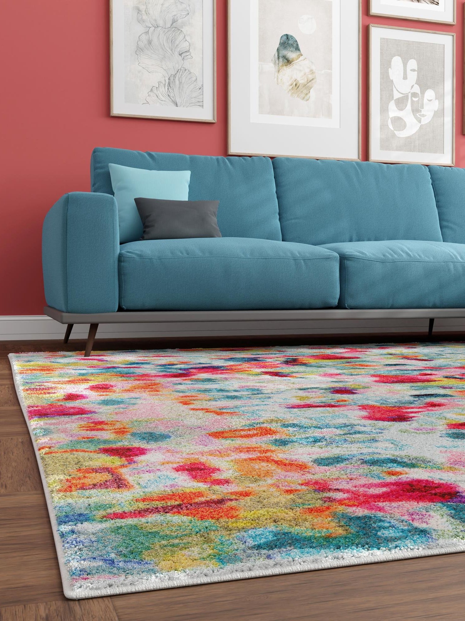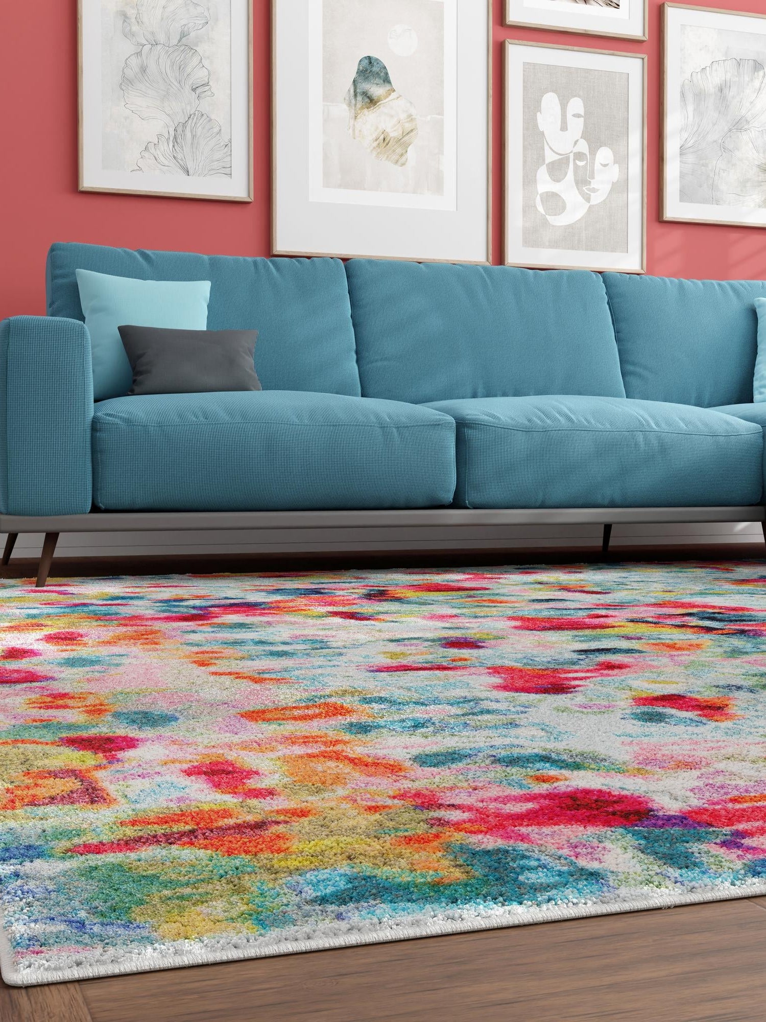 - Vibrant Color Palette: The multi-colored design adds a striking focal point to any room, enhancing your decor with modern flair. The chromatic hues work harmoniously to brighten up your space, making it more inviting and lively. This rug is perfect for those who appreciate a splash of color in their home.