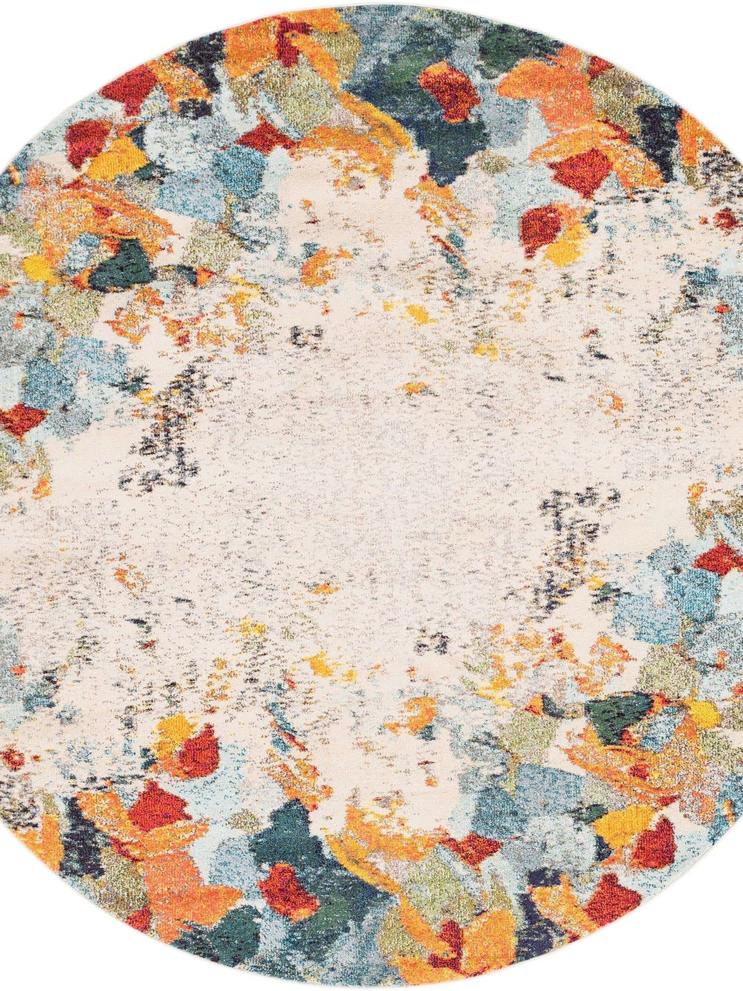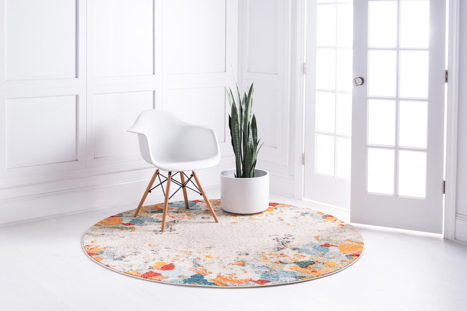 Multicolor 8' x 8' Chromatic Round Area Rug 100% Polypropylene With Cotton Backing Abstract Modern Colorful Carpet Mat for Home Decor & Interior Design
