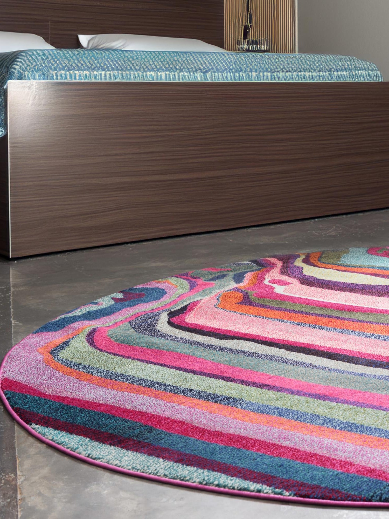 Multicolor 8' x 8' Chromatic Round Area Rug 100% Polypropylene With Cotton Backing Abstract Modern Colorful Carpet Mat for Home Decor & Interior Design